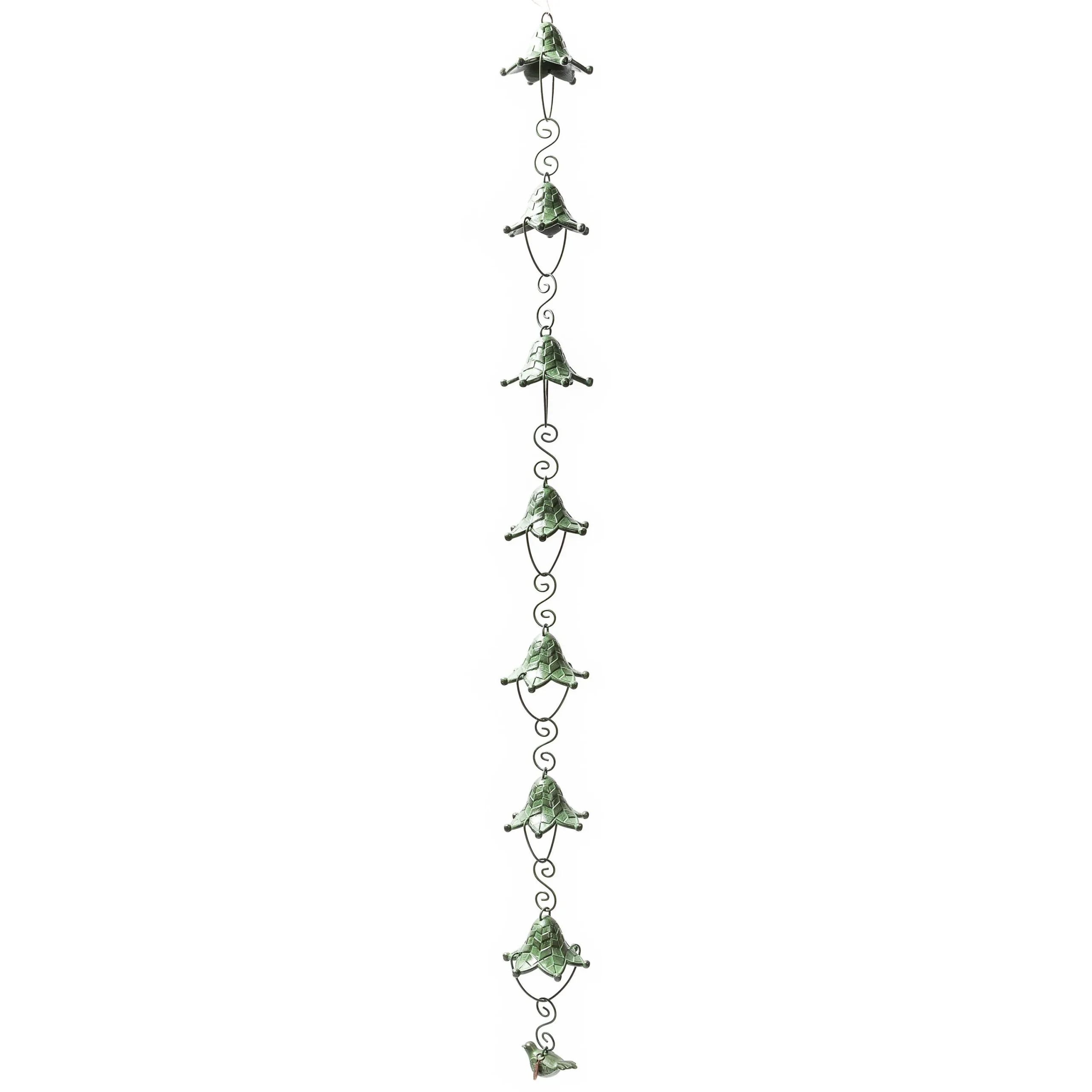 Relax To The Soothing Sensation Of The Avant Garden Rain Chain. A Series Of Verdigris Cast-Aluminum Flowers, Suspended By Stainless-Steel Chains, Catch Water In A Cascading Waterfall. It’S Accented With A Bird On The Bottom.