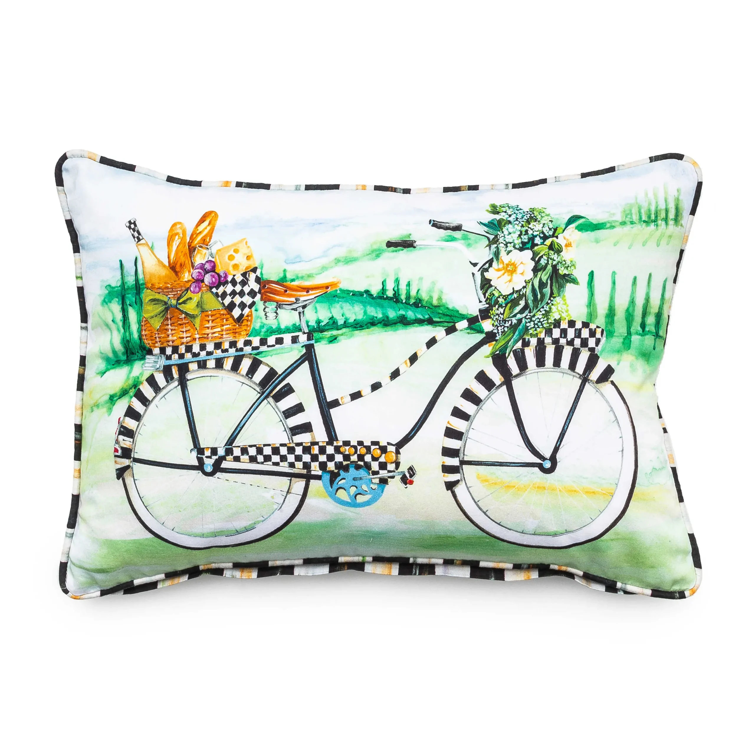 The Bike Ride Lumbar Pictures The Perfect Picnic. This Printed Pillow Is Decorated With A Courtly Check® Bicycle, Trimmed With Courtly Check Piping, And Has Our Signature Pattern On The Back, Too.