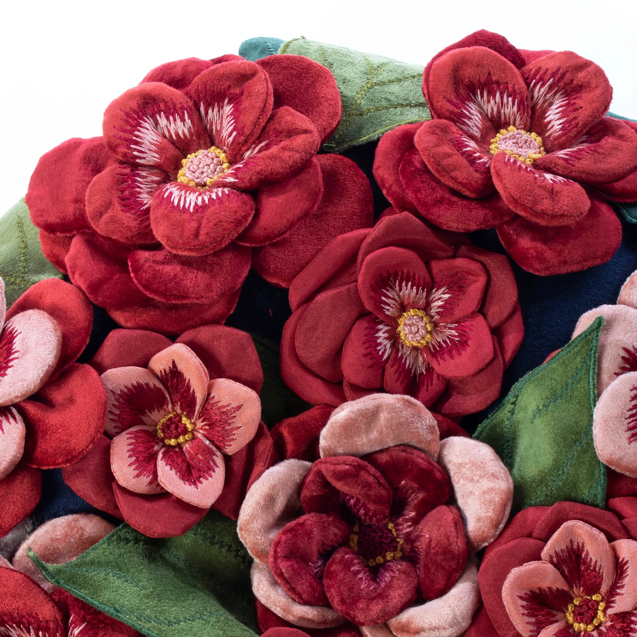 Inspired By The Plum Blossoms Of Japan, Our Bluetopia Kitano Footstool Is An Armchair Accent That’S Worthy Of The Most Engaging Conversations. It’S Bursting Into Full Bloom From Top To Bottom With A Medley Of Layered Appliques Of Richly Embroidered Velvet Blossoms And Leaves, Trimmed With Oversized Tassel Trim And Sitting On Hand-Painted Wooden Bun Feet.