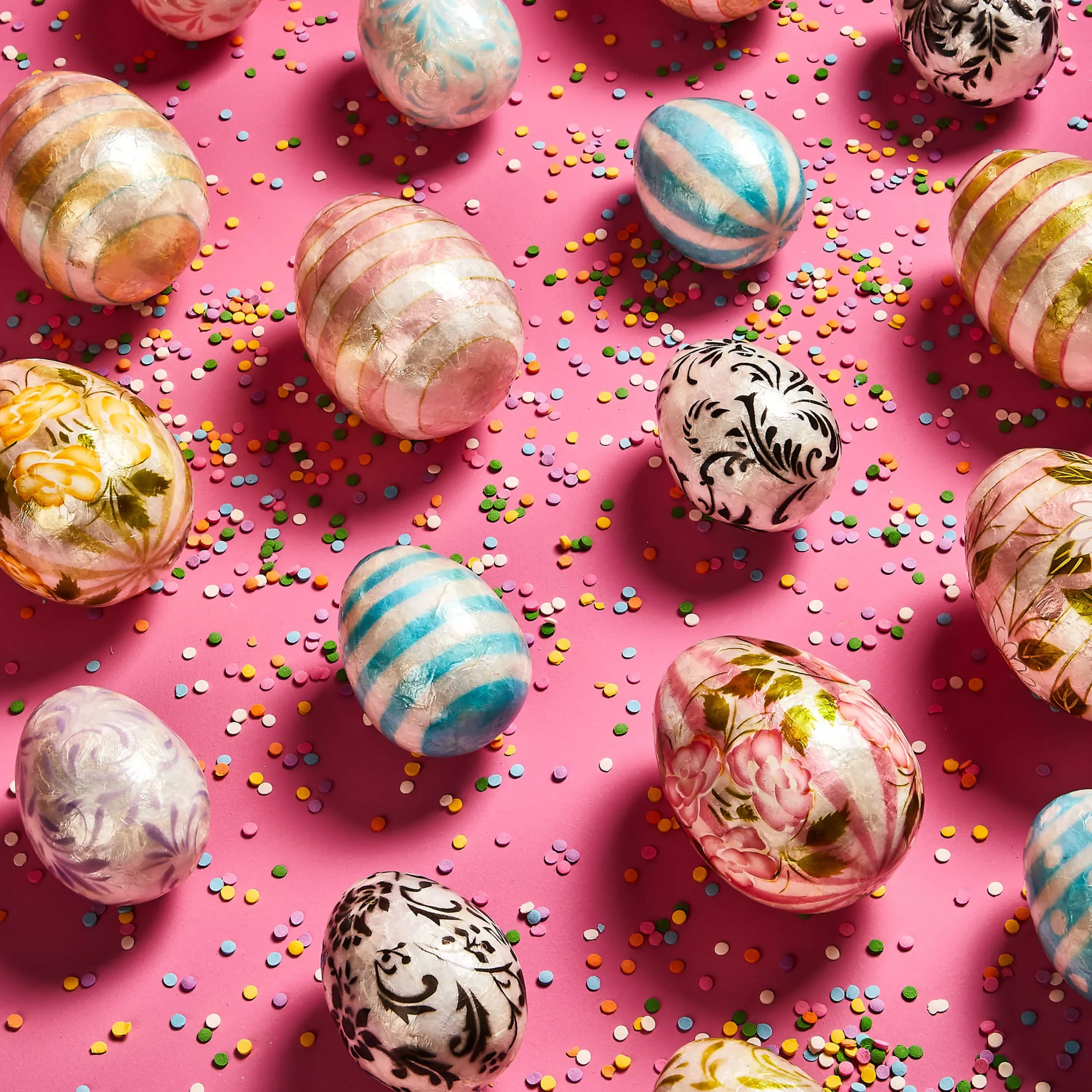 Our Set Of Four Bunny Hop Scroll Eggs Make A Statement For Spring. Made Of Capiz, They’Re Decorated With Hand-Painted Sc…