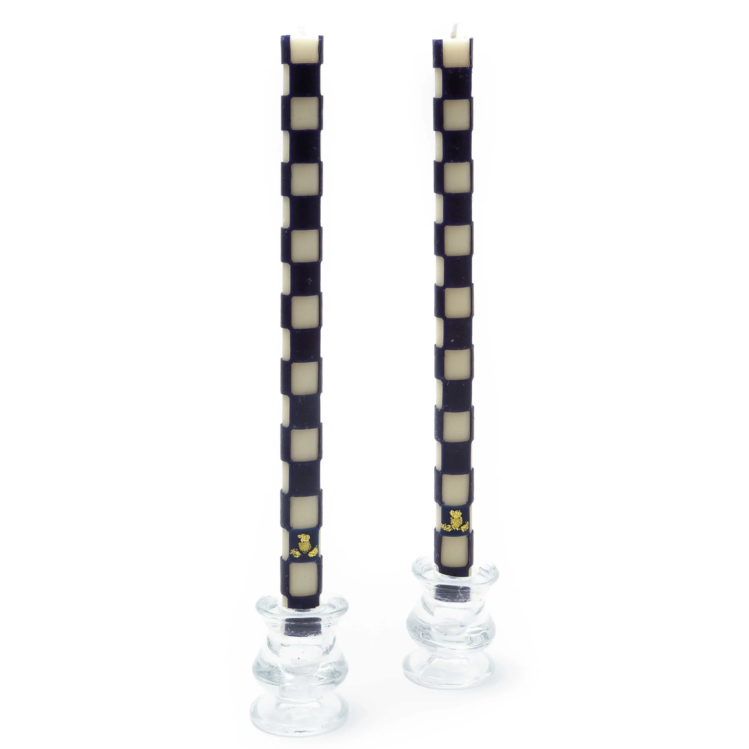 Turn Your Everyday Meals Into Something More Memorable With Our Navy Check Dinner Candles. This Set Of Two Beeswax-Blend Candles Features A Check Pattern That Adds The Glowing Touch Of Mackenzie-Childs To Your Dining Table. The Finishing Touch Is A Golden Thistle On Each Candle.
