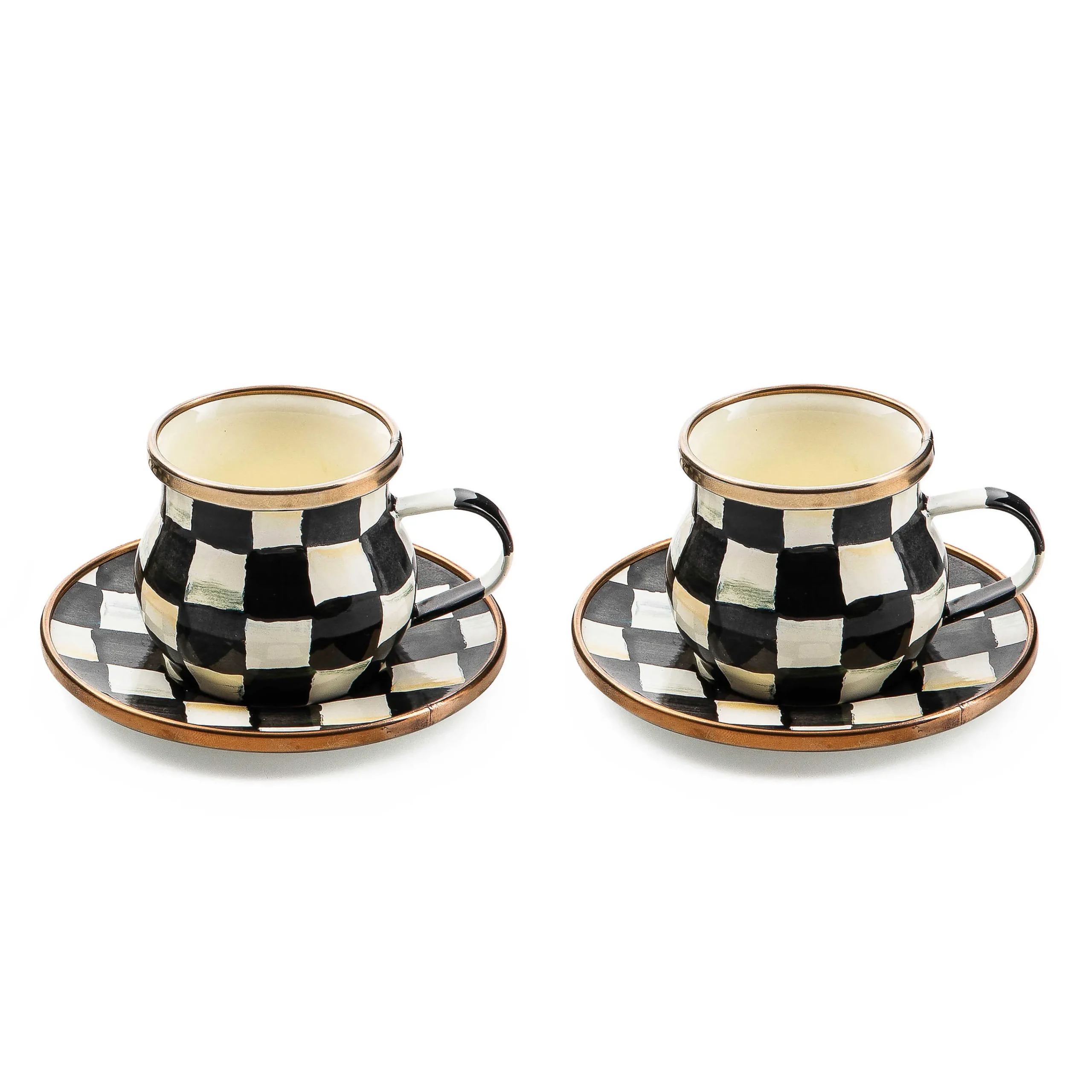 MacKenzie-Childs Courtly Check Enamel Espresso Cup & Saucer Set* Outdoor Entertaining
