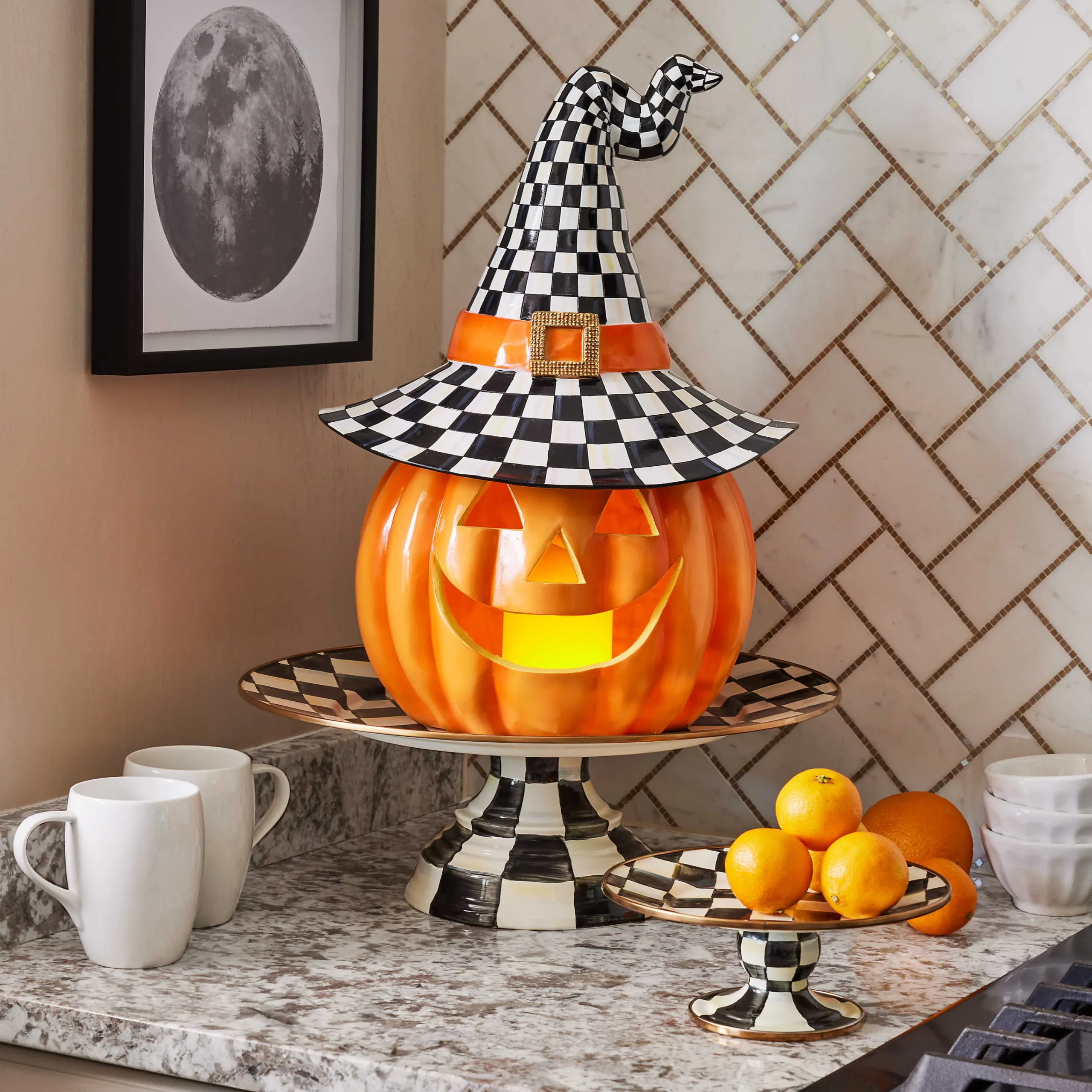 MacKenzie-Childs Courtly Check Enamel Pedestal Platter – Large* Outdoor Entertaining