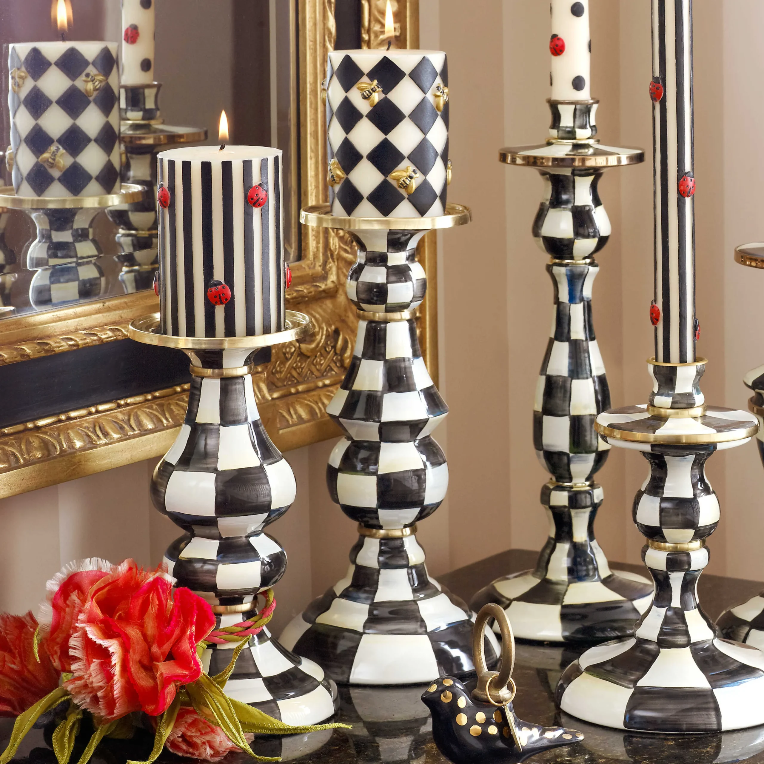 MacKenzie-Childs Courtly Check Enamel Pillar Candlestick – Large* Candles & Fragrances