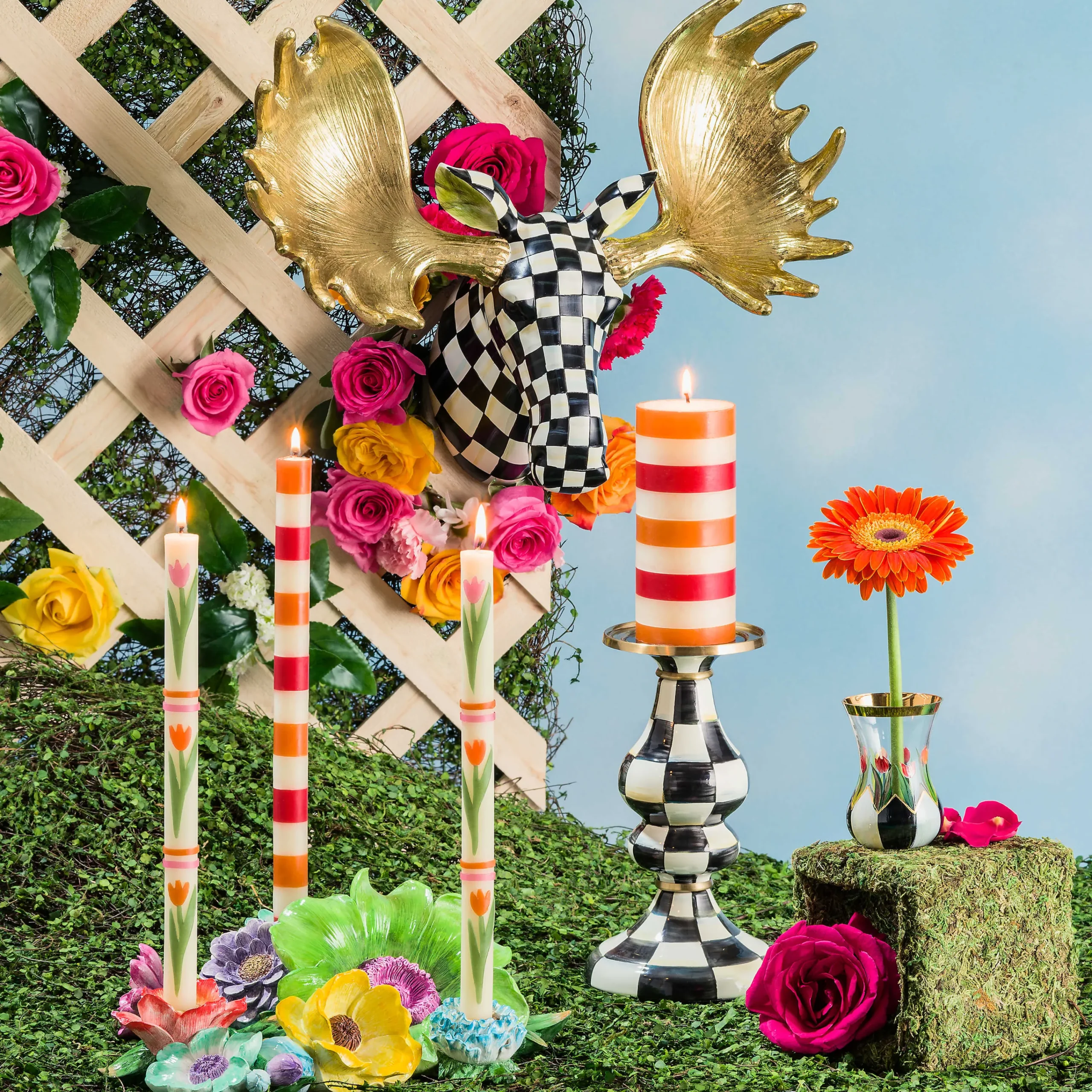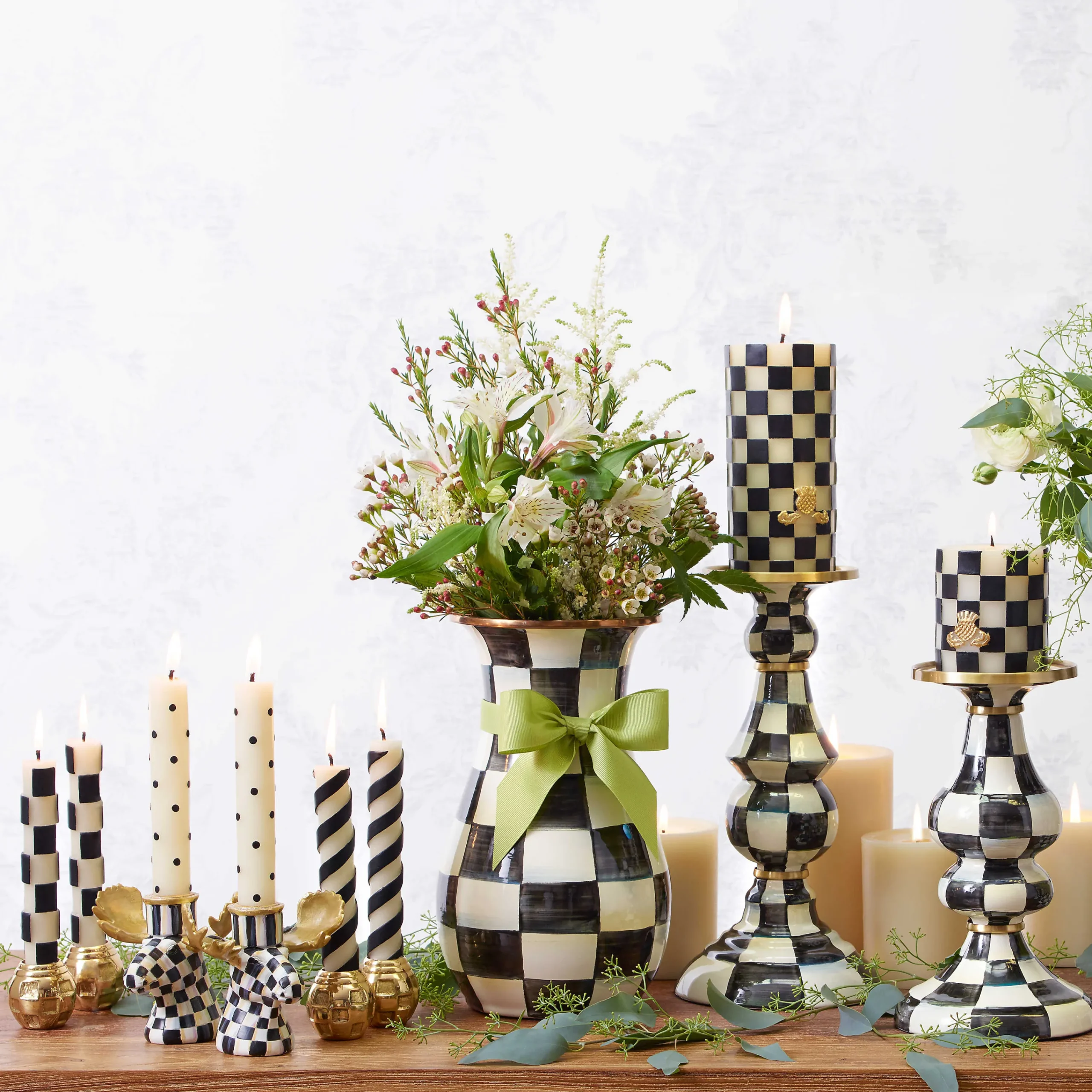 MacKenzie-Childs Courtly Check Enamel Pillar Candlestick – Medium* Candles & Fragrances