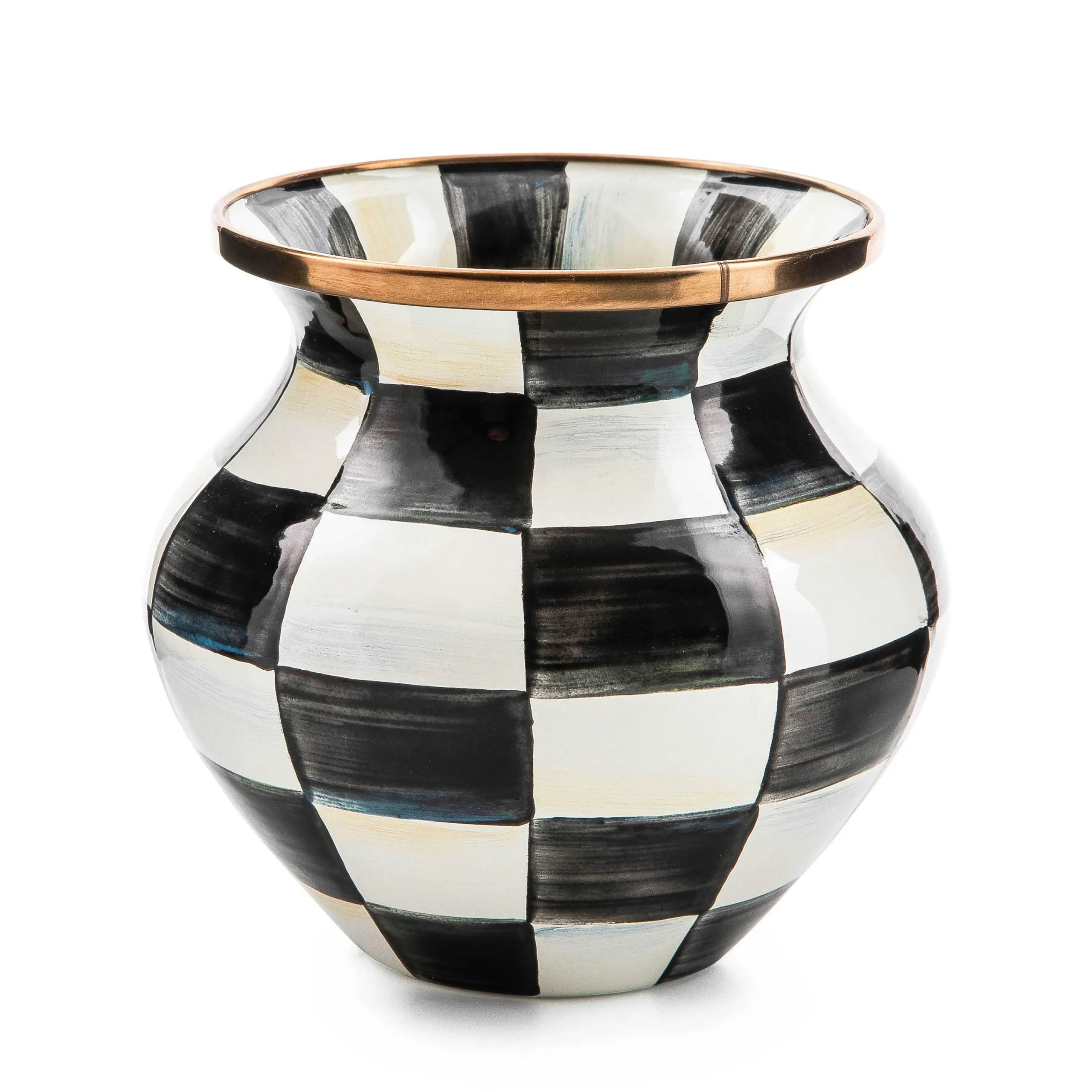 Petite And Poised, For Flowers, Paint Brushes, Pencils…(You Might Need More Than A Few!). The Sturdy Steel Underbody Of Our Courtly Check® Enamel Vase Is Adorned With Hand-Painted Checks And A Red Bow, And Rimmed In Bronzed Stainless Steel.