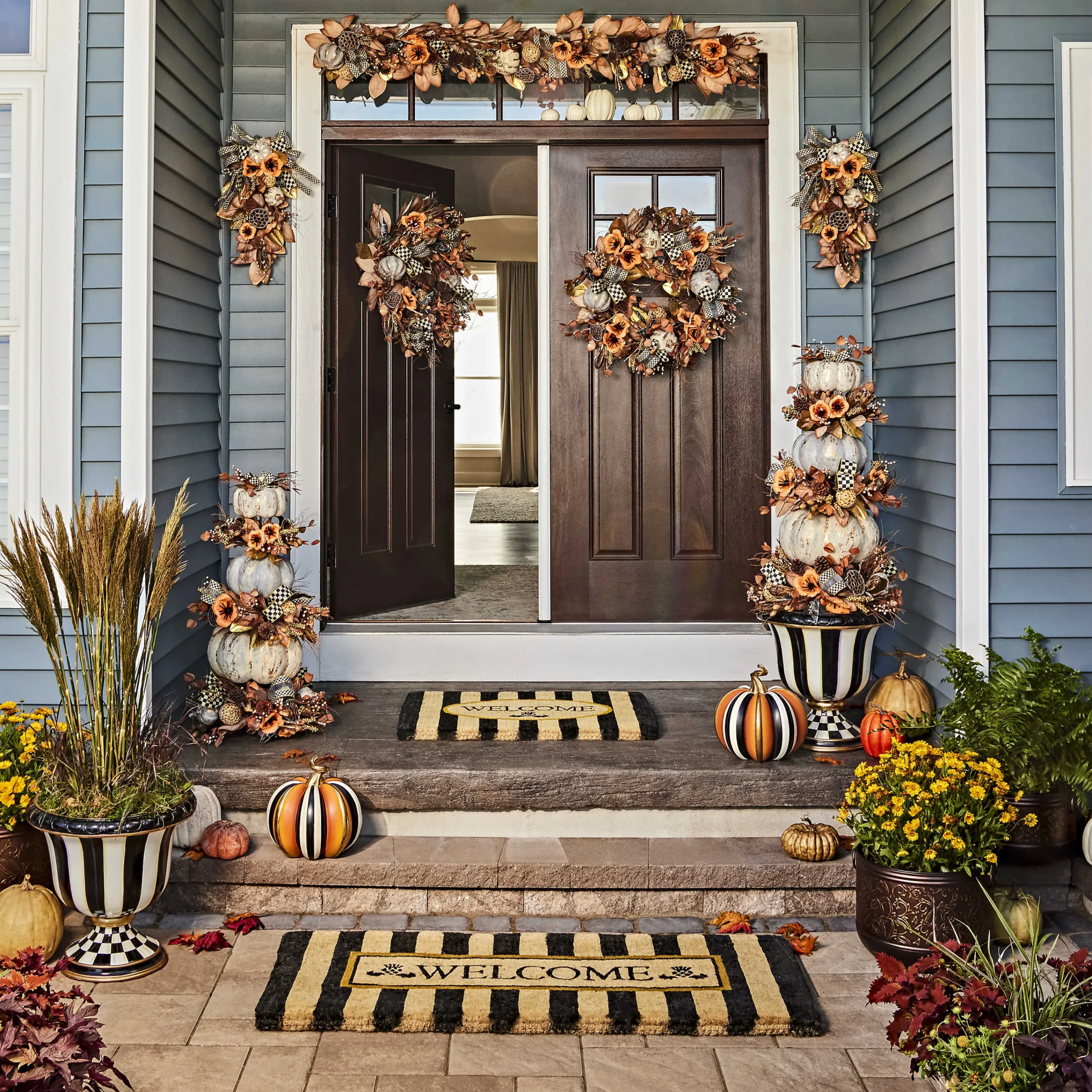 Elevate The Presentation Of Our Stacked Seasonal Accents With The Weather-Resistant Courtly Stripe Pedestal Urn. Crafted Of Durable Fiberglass And Resin, It’S Hand-Painted With Our Signature Black And White Stripes. There Is A Drainage Hole In The Bottom, So You Can Add Your Own Plants As Well.
