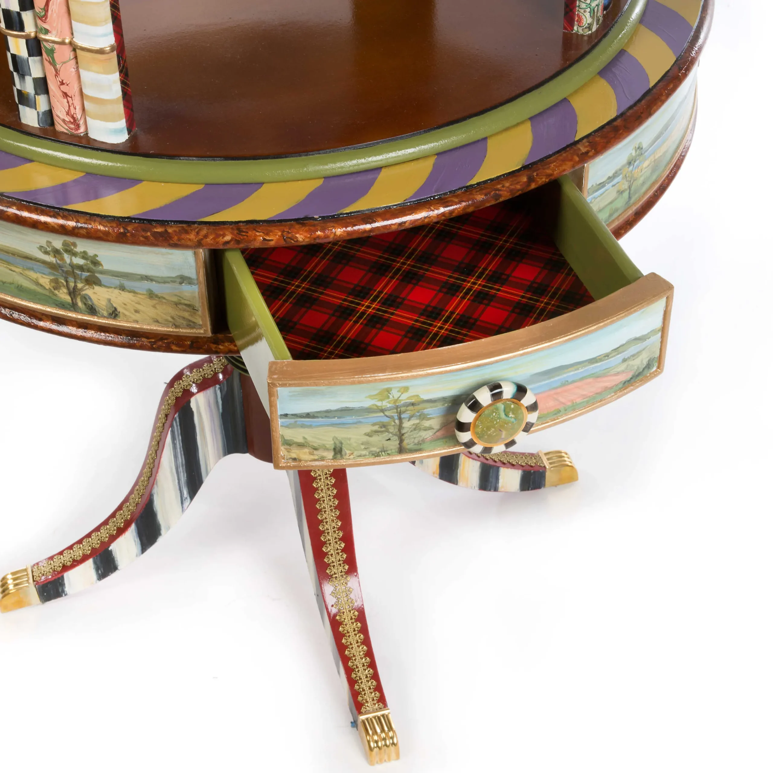 For Collectors, Compilers, And Connoisseurs, There’S No Greater Way To Showcase Beloved Curios Than Our Curiosity Carousel. A Spectacular Four-Level Stage, It Features Hand-Painted Pastoral Farm Scenes, Faux Tortoiseshell, Courtly Checks®, Multihued Stripes, And Trimmings Of Scottish Tartan, Gold Lustre, And Faux Marble. Perched Atop It All, A Pretty Little Bird Surveys The Scene. Spectacular For Exhibiting Favorite Souvenirs, Books, And Favorite Framed Photos—Not To Mention, A Stunning Tribute To The Craftsmanship Of Our Master Artisans.