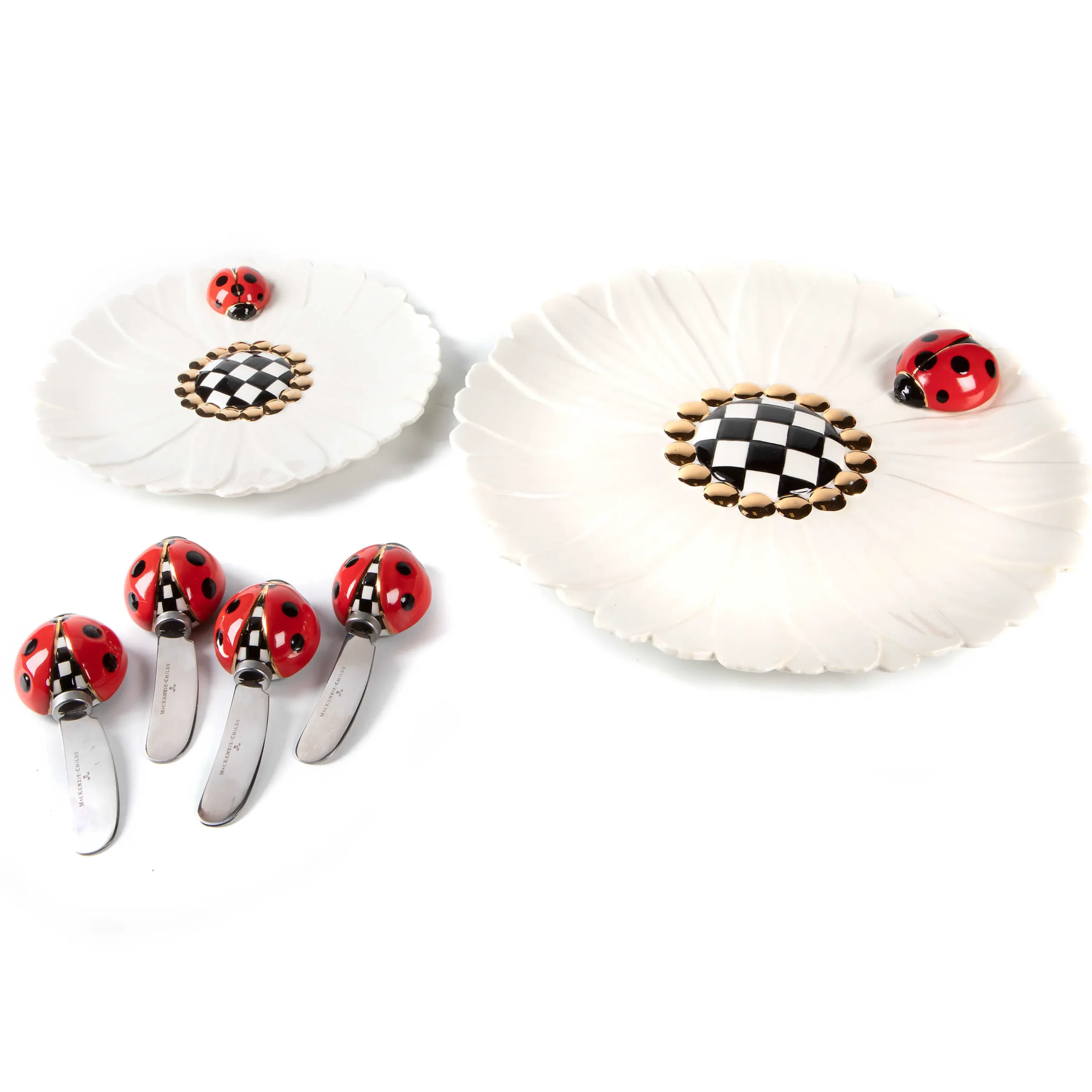Everything Looks More Delightful Served On Our Large Daisy Serving Platter. This Ceramic Platter Resembles A Large Daisy With A Checked Center, Trimmed With Gold Lustre, And Embellished With A Dimensional Ladybug.