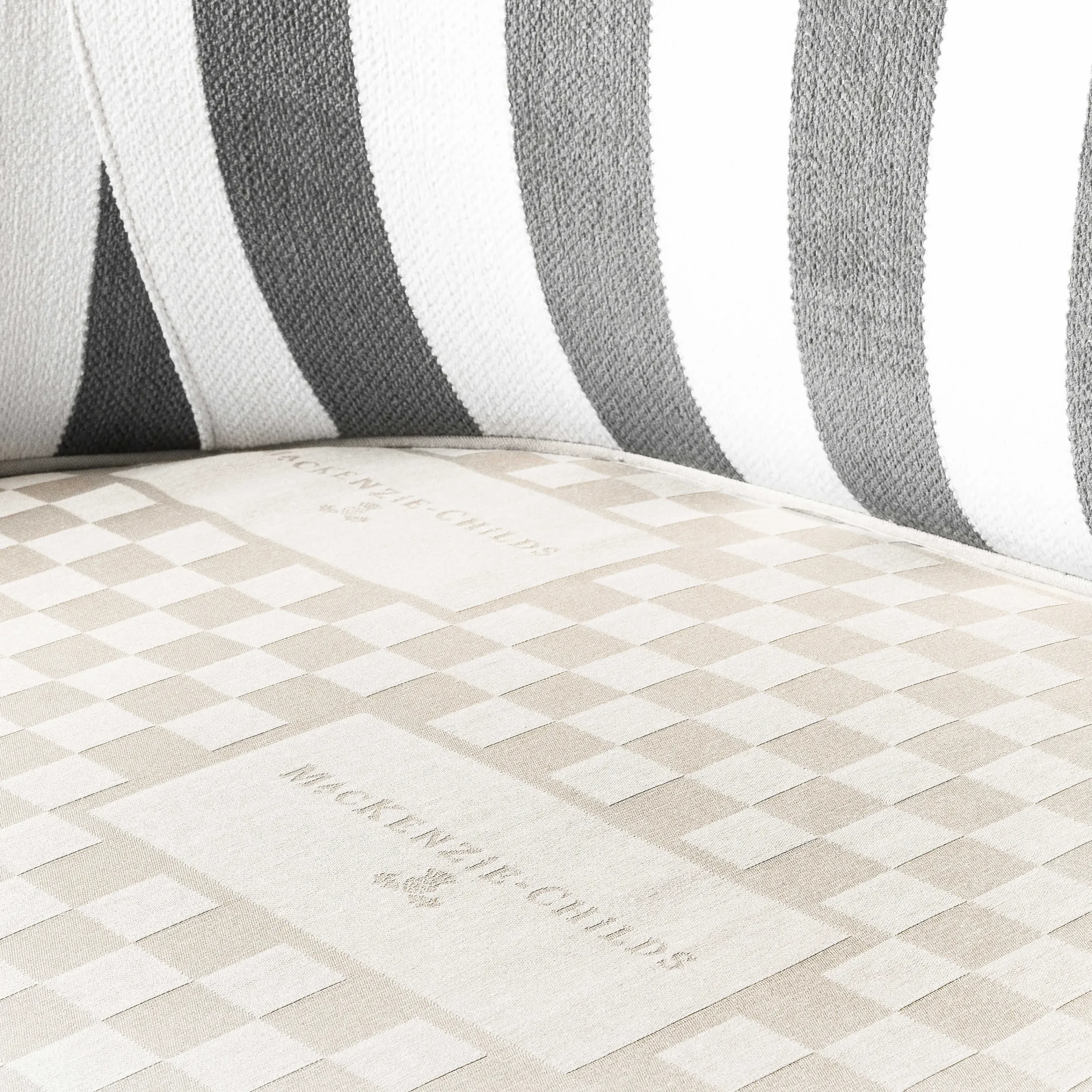 MacKenzie-Childs Marquee Loveseat – Chenille Grey Stripe* Living Room
