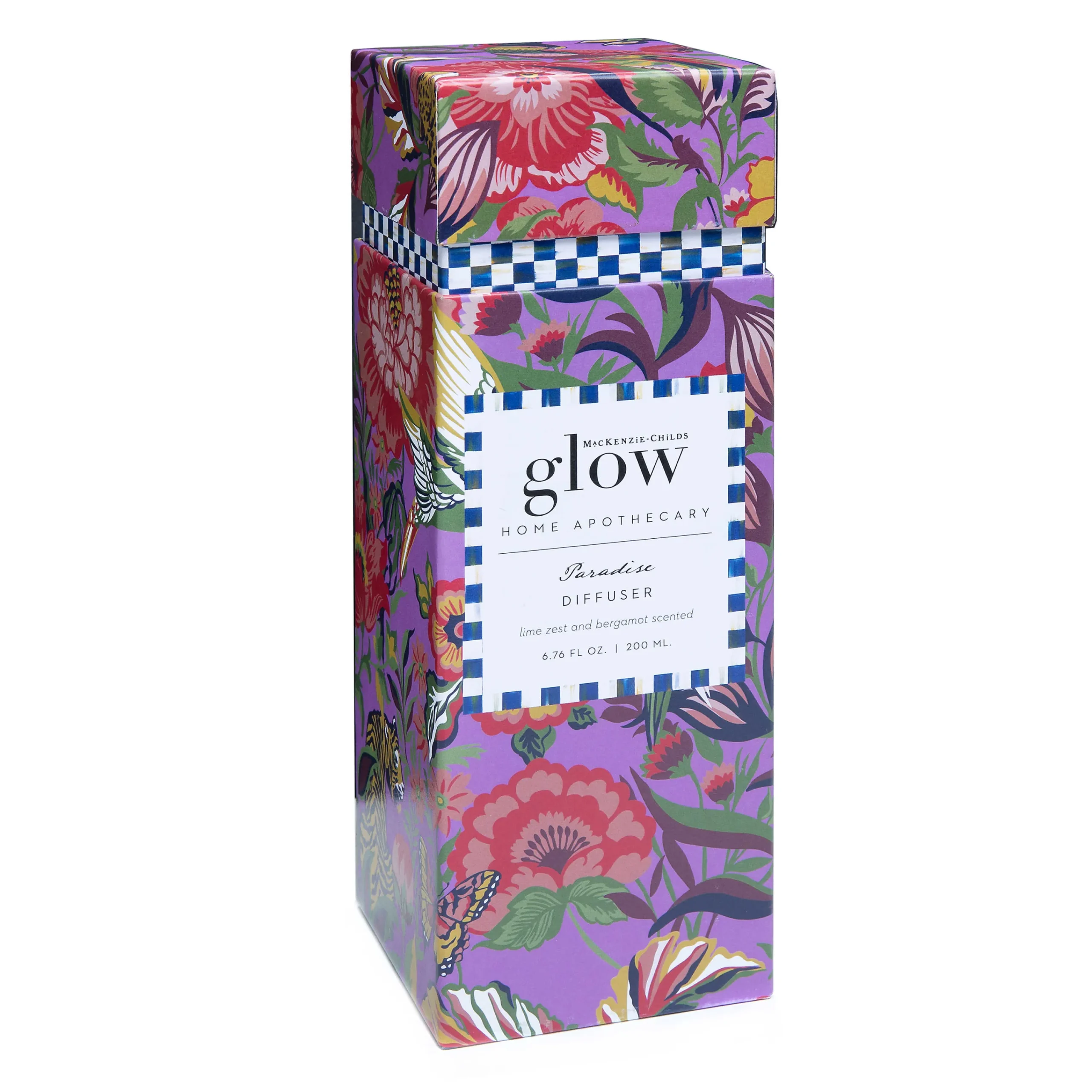 Mackenzie-Childs Glow Home Apothecary Defines The Essence Of Home With Fresh And Inviting Scents. Our Paradise Room Diffuser Features Eight Wooden Reeds That Disperse The Scent Of Lime And Bergamot When They Are Inserted Into An Accompanying Etched Glass Vessel.