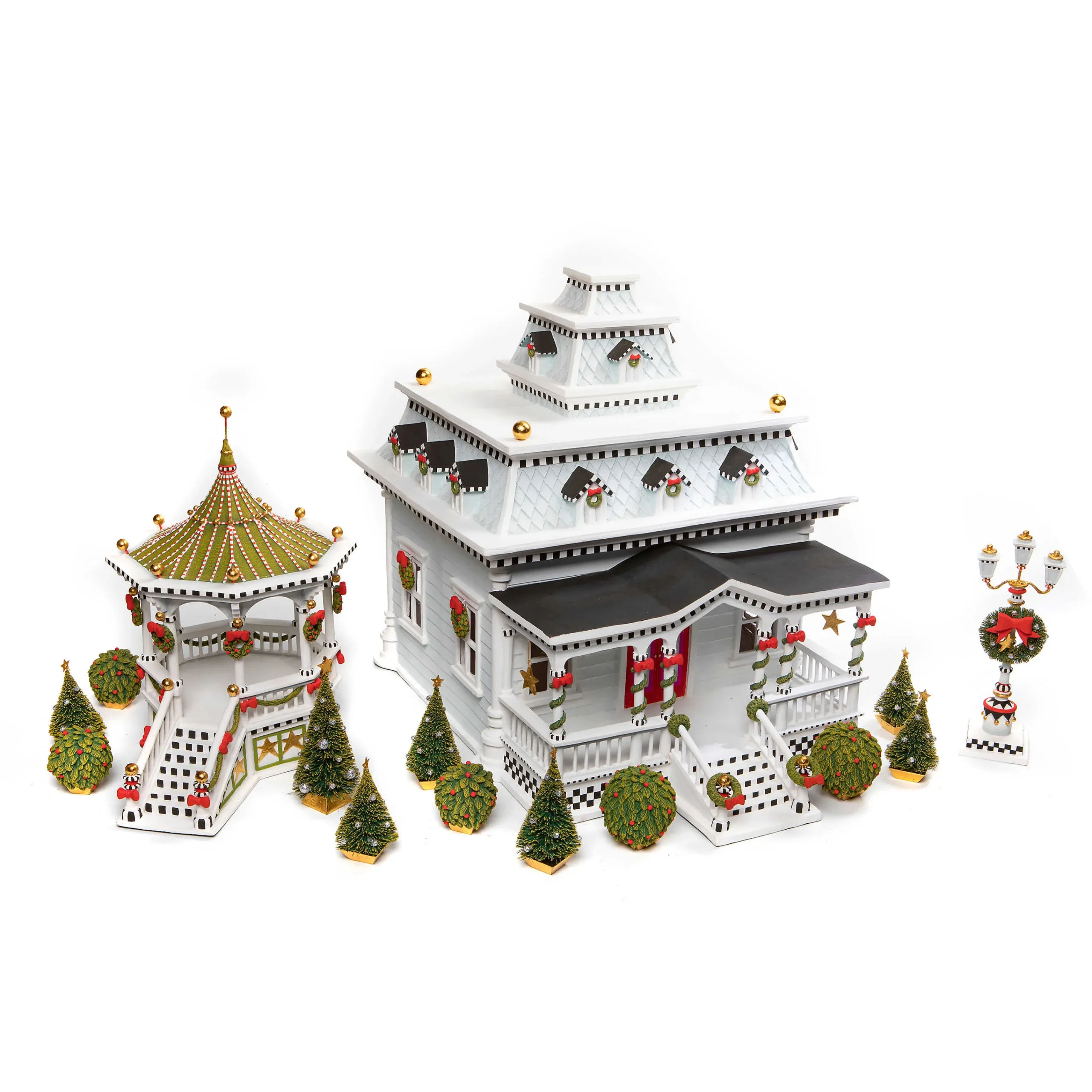 Add To Your Patience Brewster Caroler Gazebo Display With The Patience Brewster Caroler Lamp Post. The Handmade And Hand-Painted Lamp Post Is Merry And Bright, Decked In Check And Stripes, And Decorated With A Festive Bottlebrush Wreath.