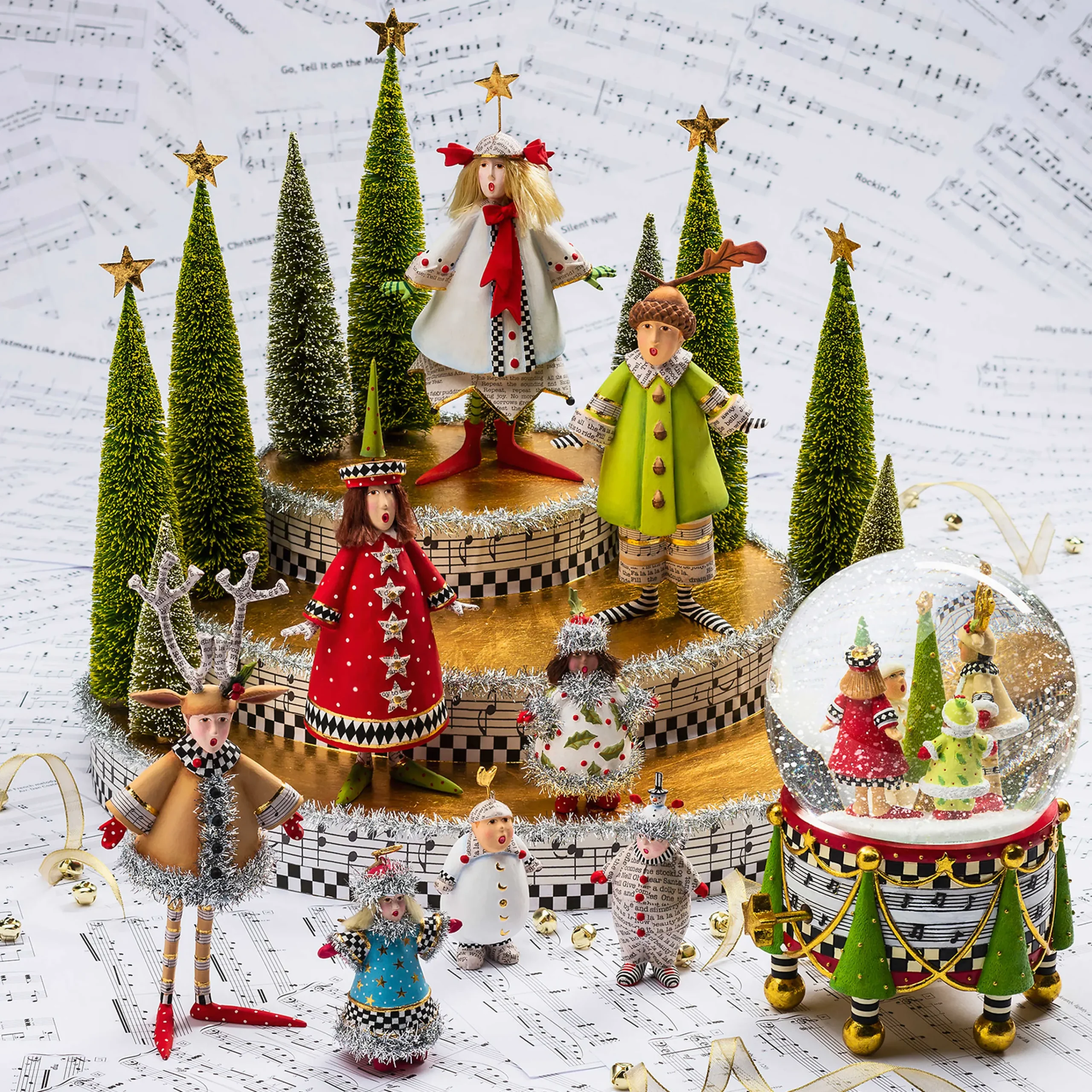 MacKenzie-Childs Patience Brewster Pearl With Red Bows Holiday Caroler Figure* Room Accents