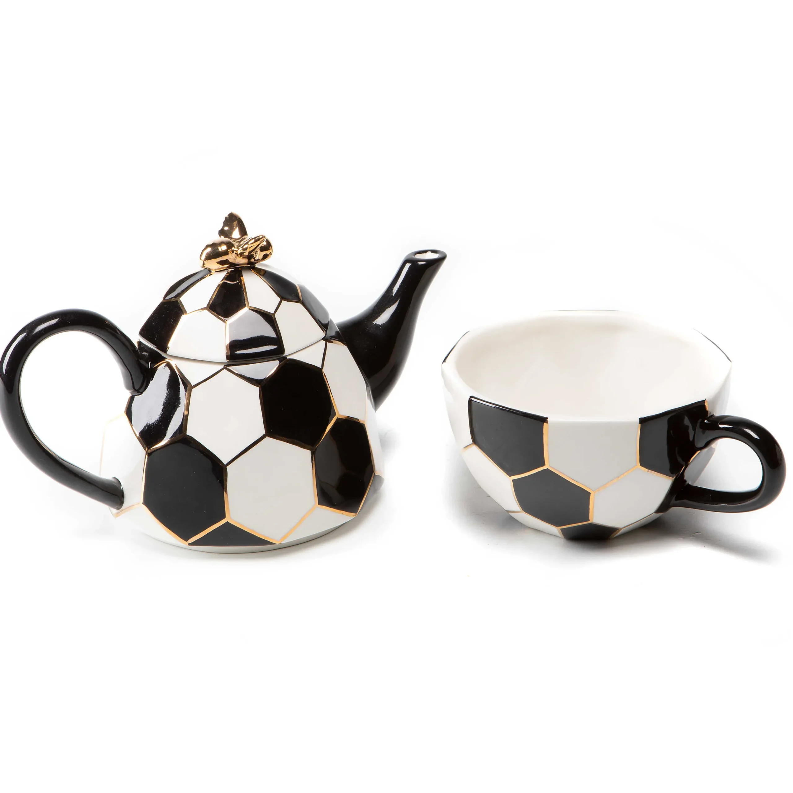 The Queen Bee Tea For One Serves In Singular Style. This Three-Piece Compact Ceramic Creation Consists Of A Teacup With A Teapot And Lid Stacked On Top. Decorated In A Modern Black And White Hive Pattern, Trimmed With Gold Lustre, It’S Embellished With A Buzz-Worthy Golden Bee On Top.
