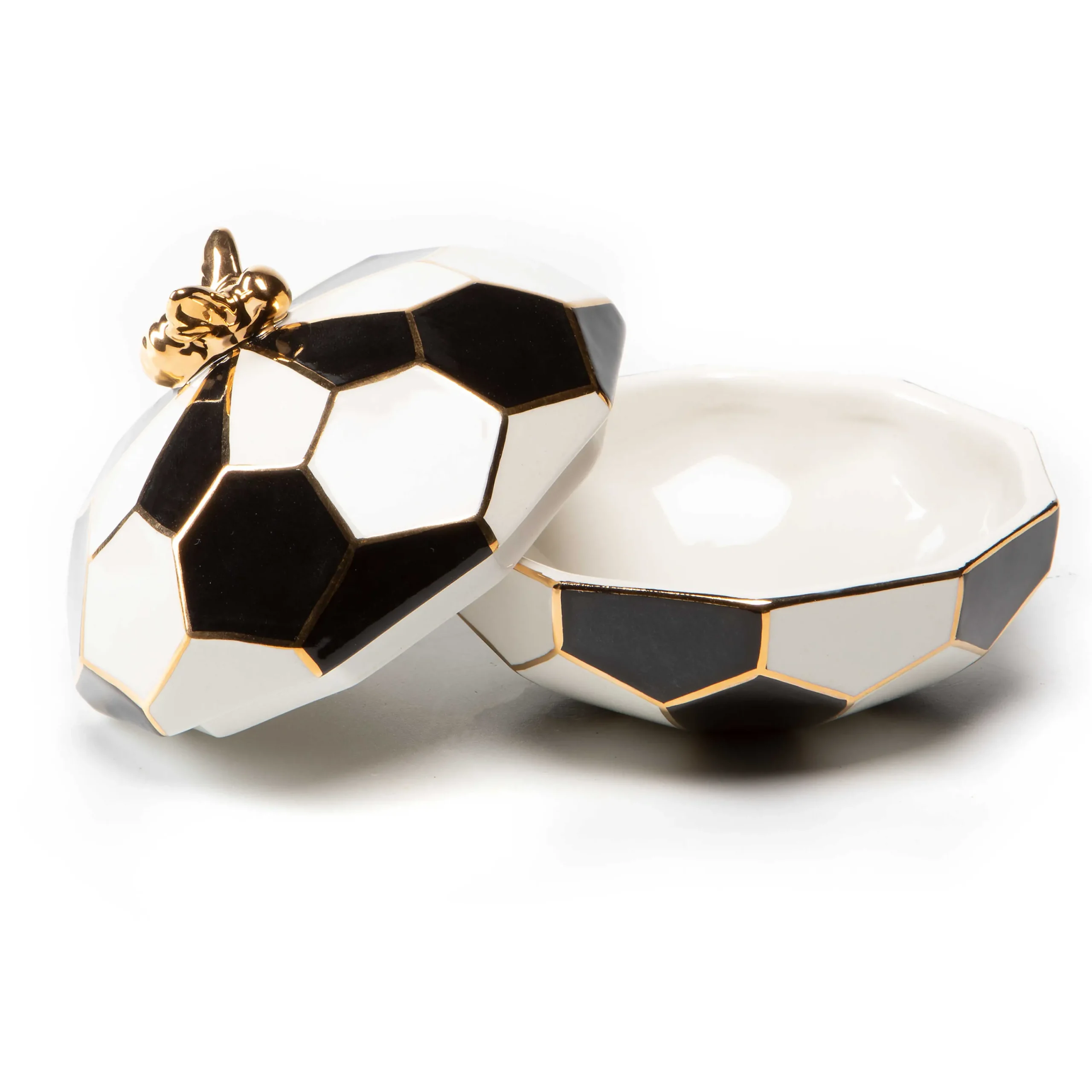 The Ceramic Queen Bee Trinket Dish Stores With Style. Decorated In A Modern Black And White Hive Pattern, Trimmed With G…