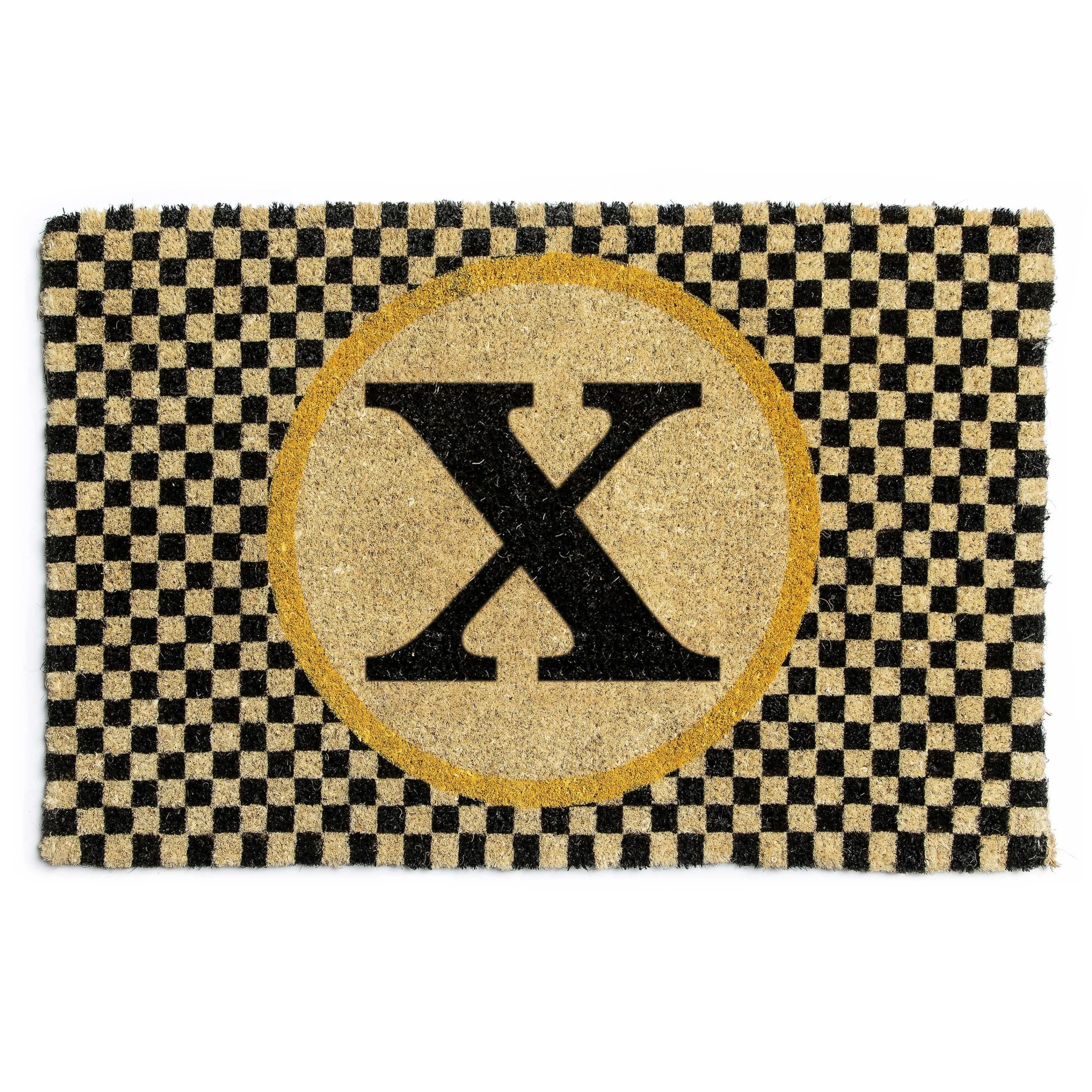 Put Your Stamp On Stylish Salutations With Our X Single Letter Monogrammed Entrance Mat. It’S Made Of Natural Materials With A Bold, Printed Initial Letter In A Field Of Checks. Use It In Protected Areas, And When Its Useful Life Is Over, You Can Recycle This 100% Biodegradable Mat By Burying It In Your Garden!