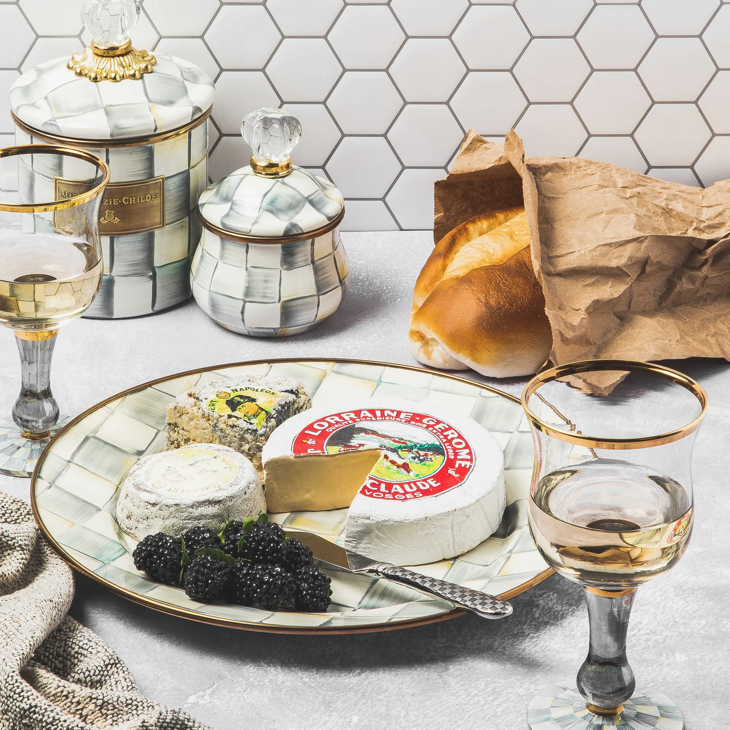 MacKenzie-Childs Sterling Check Enamel Lidded Sugar Bowl* Outdoor Entertaining