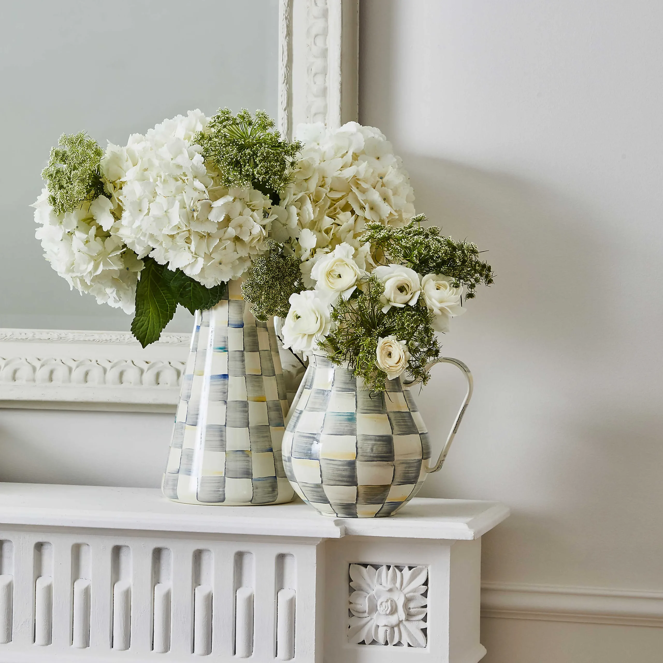 For Lemonade, Iced Tea—Or Better Yet, A Blend Of Both—Nothing Beats Our Large Sterling Check Practical Pitcher. And When It Isn’T Being Used For Serving Beverages, It Makes A Wonderful Vase With The Color Of The Blooms Playing Off The Hand-Painted Checks In A Range Of Grey Hues Woven With Jewel Tones.