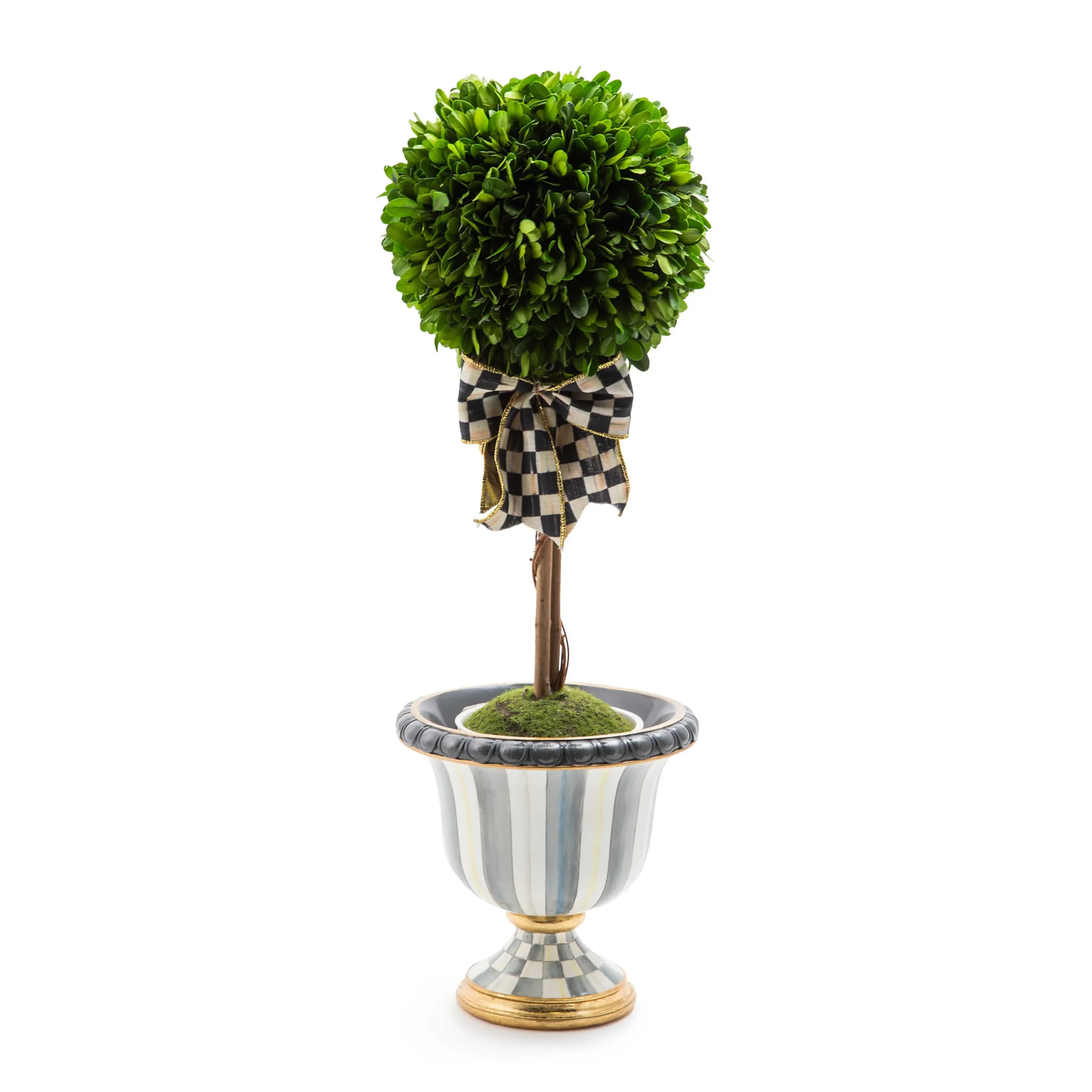 Elevate The Presentation Of Our Sterling Check Pattern With The Sterling Check Tabletop Urn. Hand-Painted With Our Signature Grey And White Patterns With Golden Embellishments, It’S Just The Right Size For Our Topiary Drop-Ins.