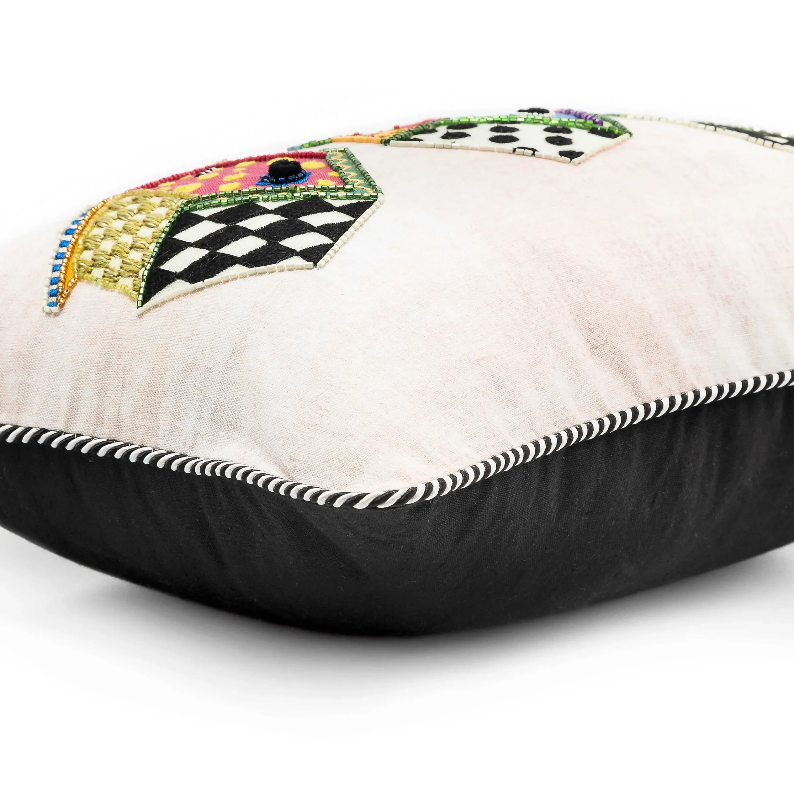 An Embroidered Trio Of Our Home Tweet Homes On A Cotton-Linen Front Accentuate The Bird House Lumbar Pillow. The Finishing Touch Is Twisted Black And White Cording.
