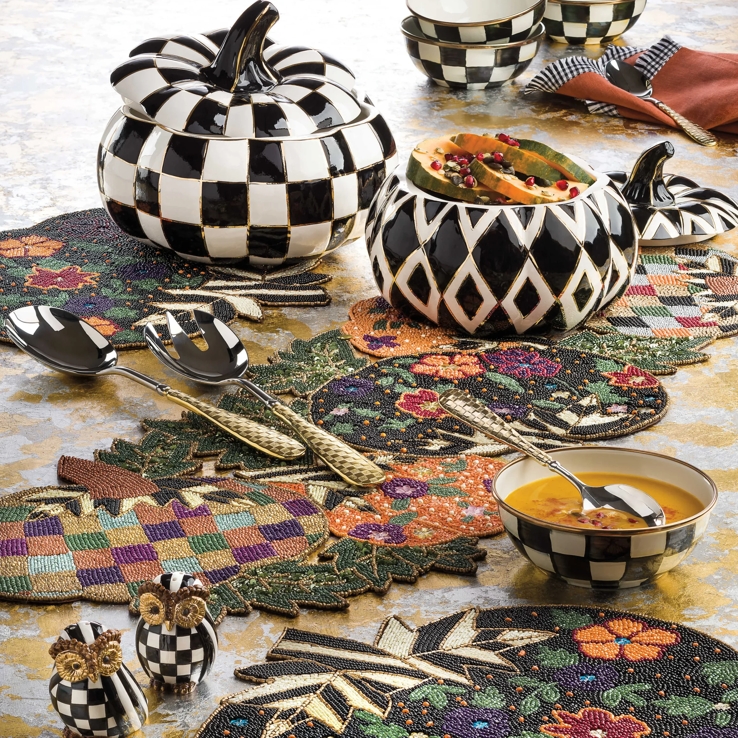 MacKenzie-Childs Check Salad Serving Set – Gold* Serveware