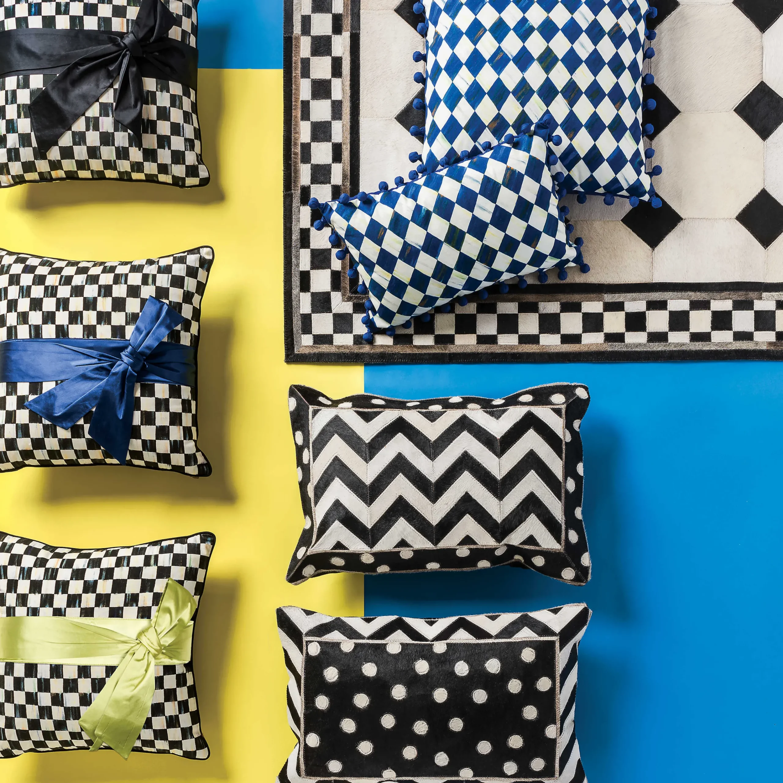 MacKenzie-Childs Courtly Check Sash Pillow – Black* Pillows, Throws, & Cushions