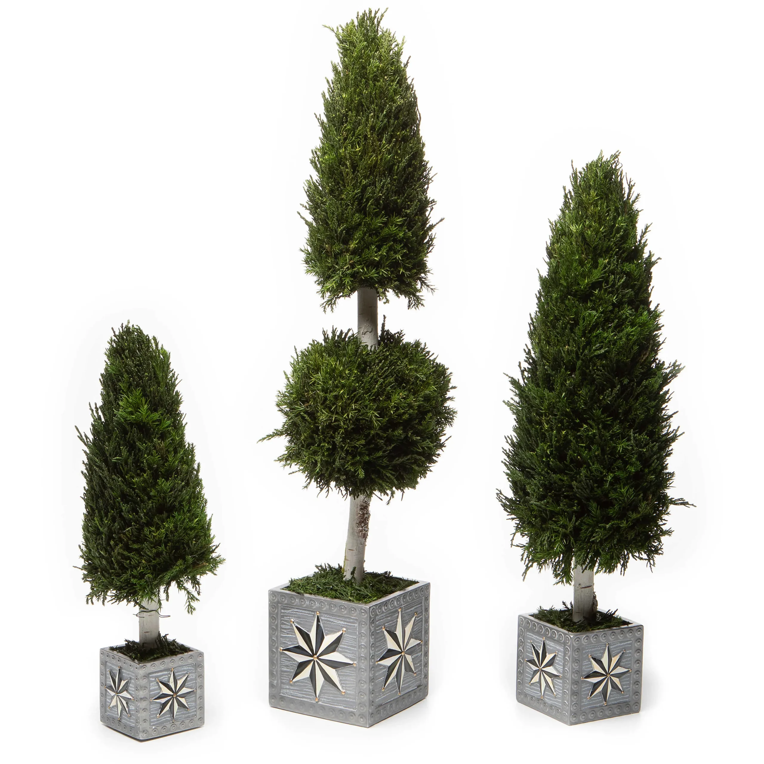 Make A Welcoming Statement On Your Tabletops With The Festive And Fresh Medium Farmhouse Cypress Tree. Made Of Preserved Cypress, It’S Presented In A Container With A Distressed Tin Finish That’S Accented With Dimensional Courtly Stars. Display It With The Small Farmhouse Cypress Tree And The Large Farmhouse Cypress Tree To Add Dimensional Delight To Your Holiday Displays.