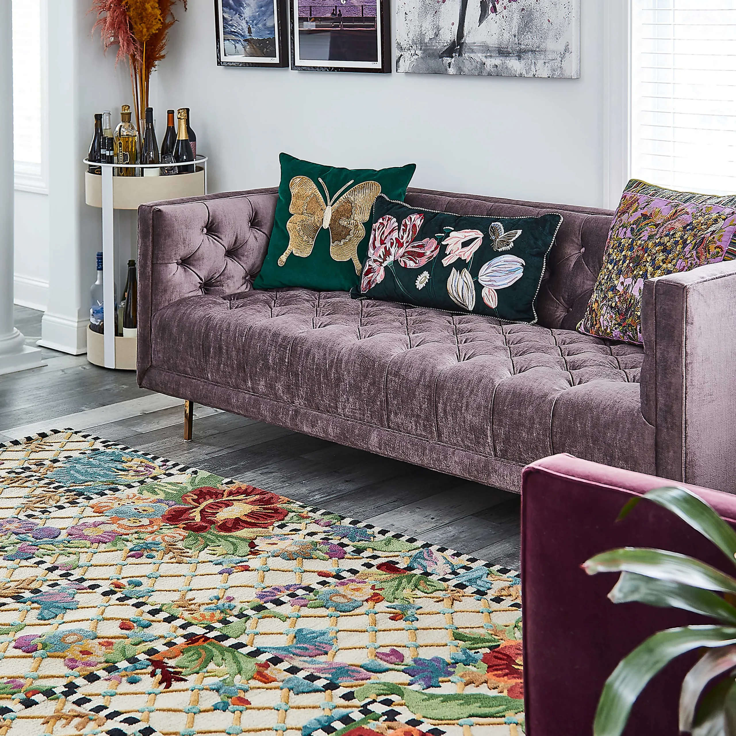 The 5′ X 8′ Flower Market Trellis Rug Features One Of Our Classic Dinnerware Patterns, Bringing Its Color And Charm To Your Floors. This Wool-Blend, Hand-Tufted Rug Features The Look Of A Collage Of Flower Market Panels, Separated By Stripes, On A Lattice Background. More Interest Comes From The Blossoms Being Sculpted Slightly Higher, Adding A Bit Of Dimension.