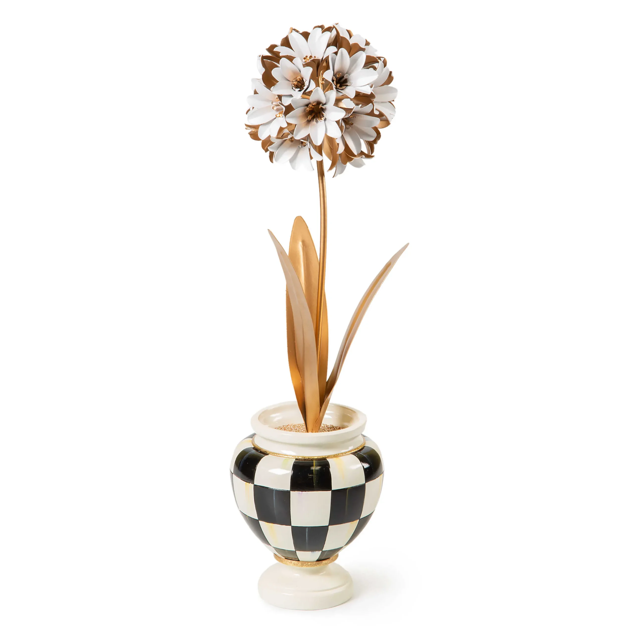 Simple And Chic, Our Marquee Potted Allium Flower Features A Dimensional Metal Flower In A Courtly Check® Pot, Accented With Gold Leaf. Mix And Match It With The Other Marquee Potted Flowers, Including The Hyacinth, Primrose, And Star Flower.