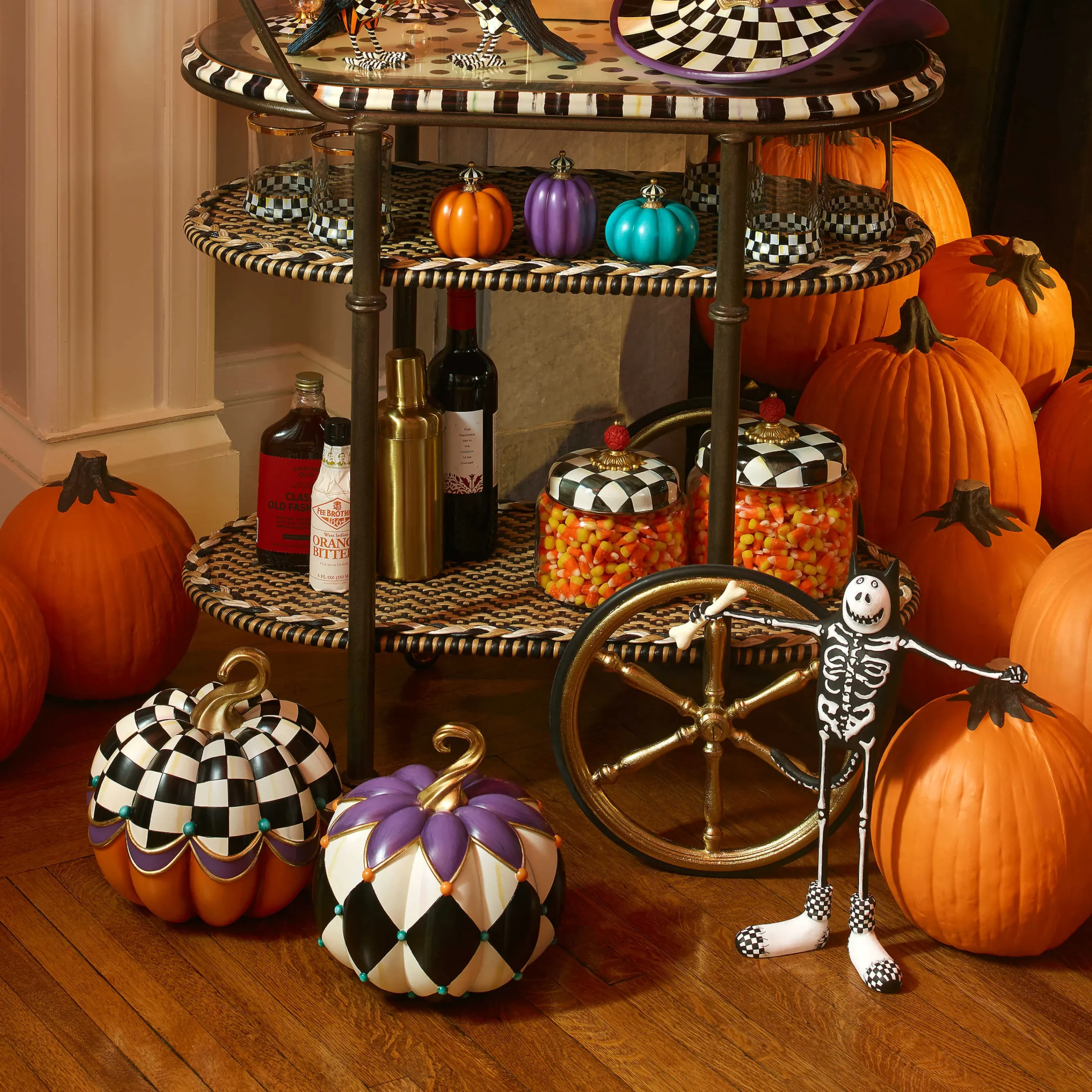 The Handmade And Hand-Painted Patience Brewster Boney Cat Figure Is Part Cat, Part Skeleton, And Pure Fun! This Frisky Feline Wears A Black And White Skeleton Suit, Accented With Checked Details. Pair It With Patience Brewster Scaredy Cat For Some Spook-Tacular Halloween Happiness.