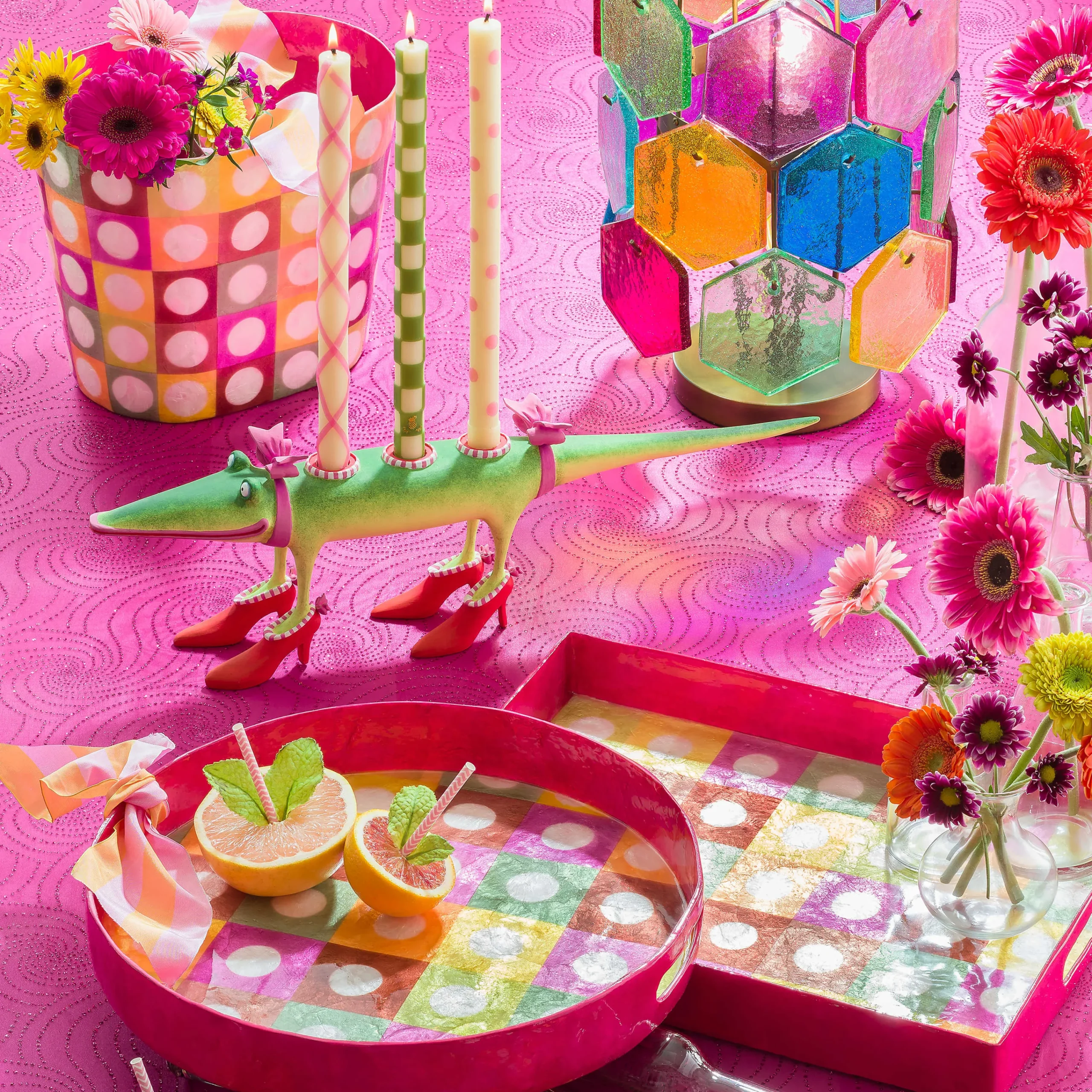 The Patience Brewster Gloria Alligator Candle Holder Lends A Whimsical Touch To Your Tabletop Or Mantel. Gloria Alligator, In Her Lipstick And Heels, Is A Tribute To Humor, To Kicking Up Your Heels, And To Grinning, No Matter What.
