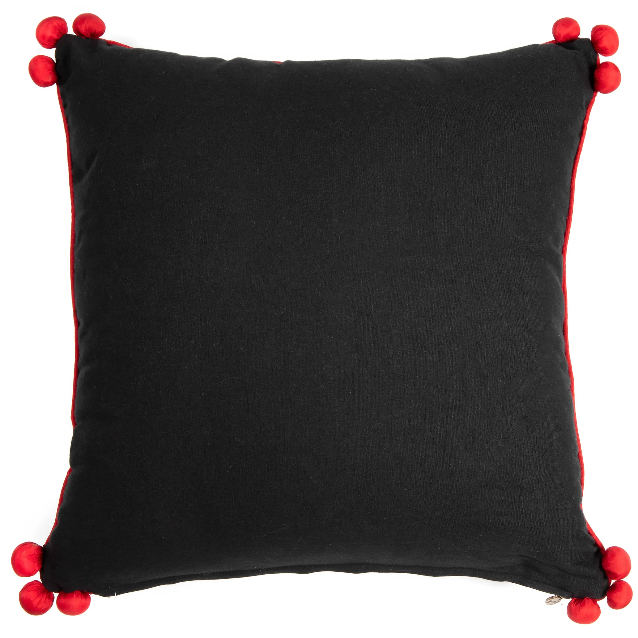 Rise And Shine With Our Rooster Pillow. Its Printed Front Is Embellished With Chenille Embroidery, Beading, And Sequins, Trimmed With Red Piping And Handmade Fabric Pom-Poms On The Corners.