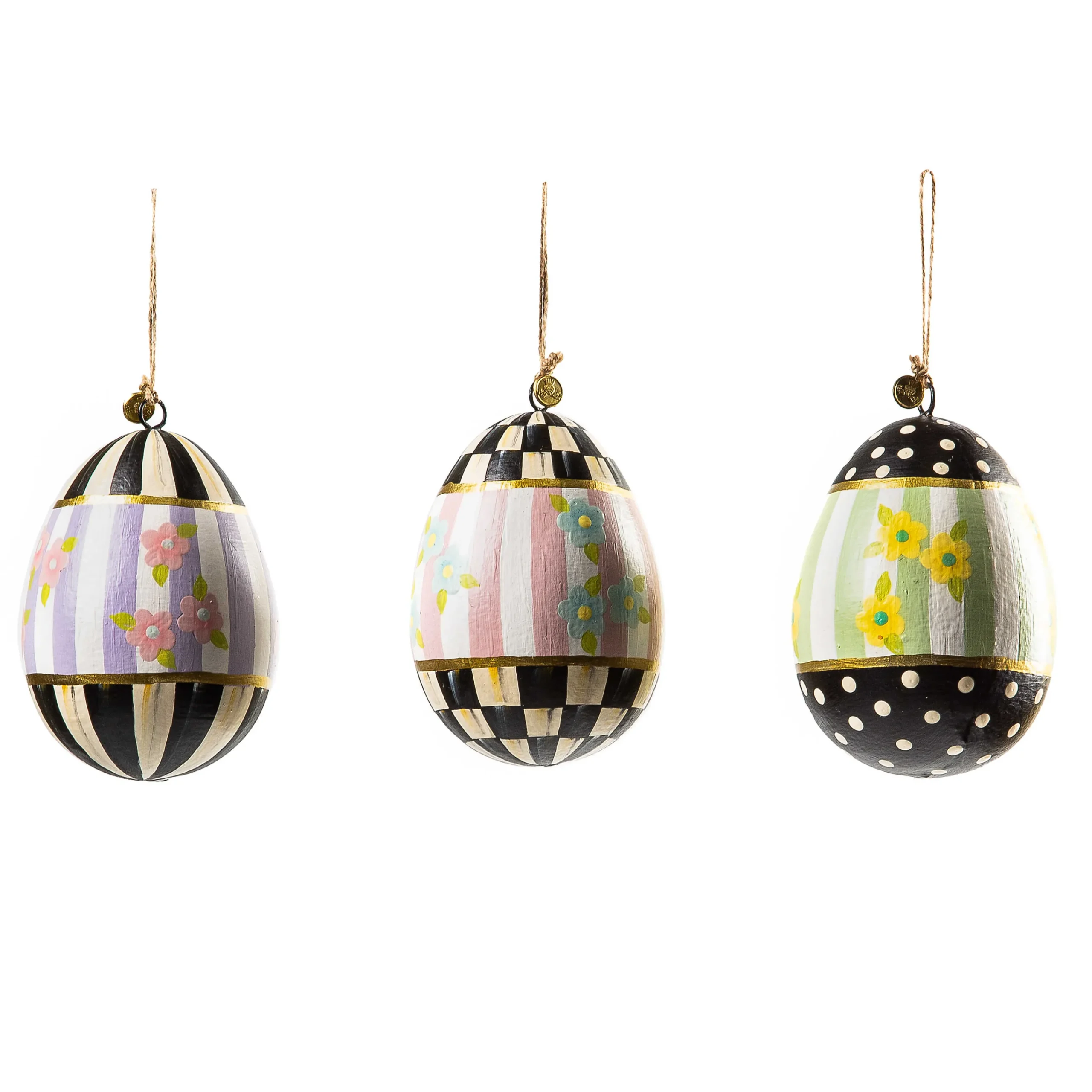 Add Our Set Of Three Rose Garden Egg Ornaments To Your Easter Tree Or Displays. They’Re Hand-Painted With Pastel Striped Centers And Floral Accents, Finished With Courtly Check® And Courtly Stripe On The Ends.