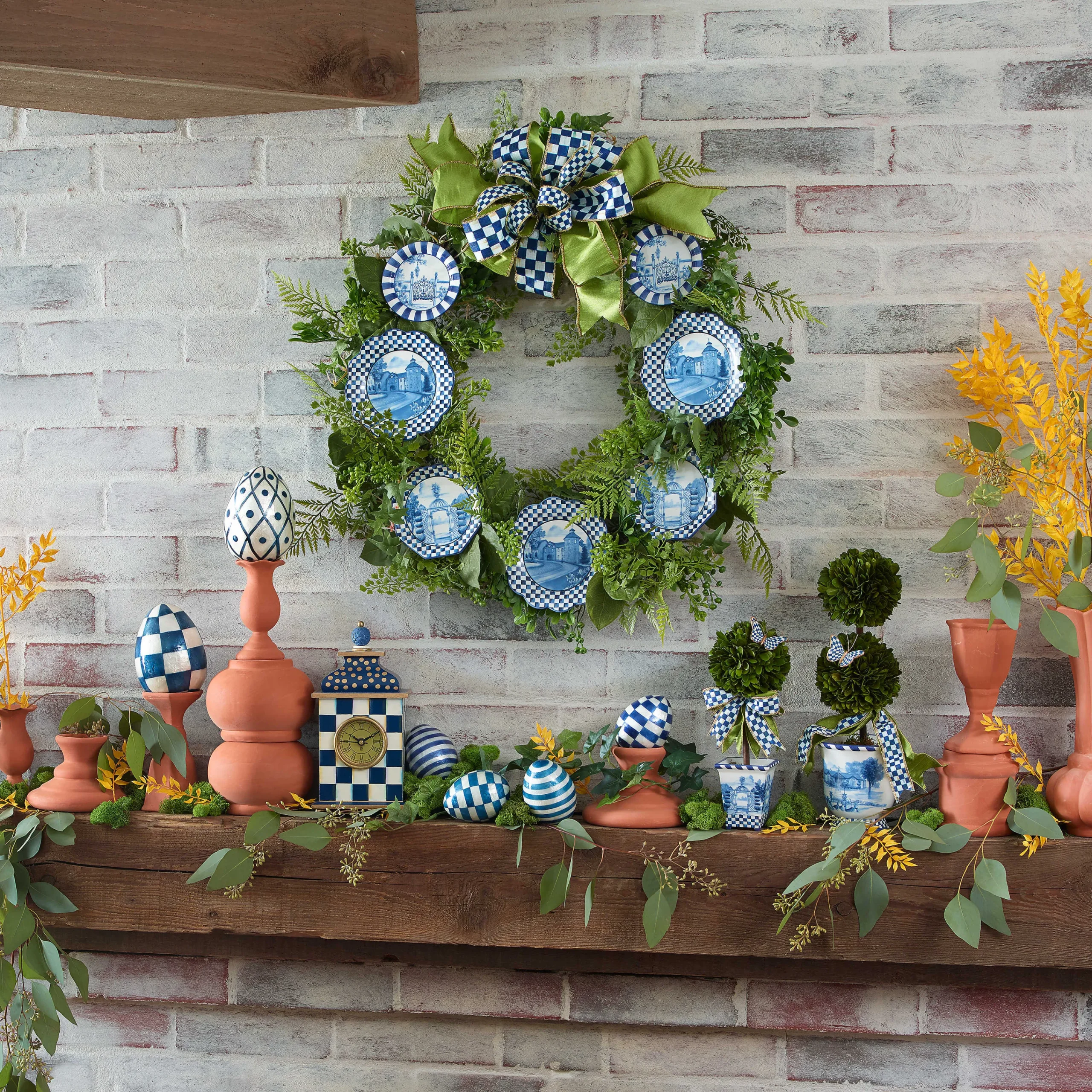 The Preserved Boxwood In Our Medium Royal Boxwood Topiary Is Intricately Woven Together, Looking Effortlessly Elegant In A Ceramic Base That’S Decorated With An Image Of Our Chicken Palace Here On The Farm That Invokes Classic Blue Chinoiserie Style. A Royal Check Butterfly And Ribbon Provide The Finishing Touches. Choose A Pair To Make A Statement Of Style.