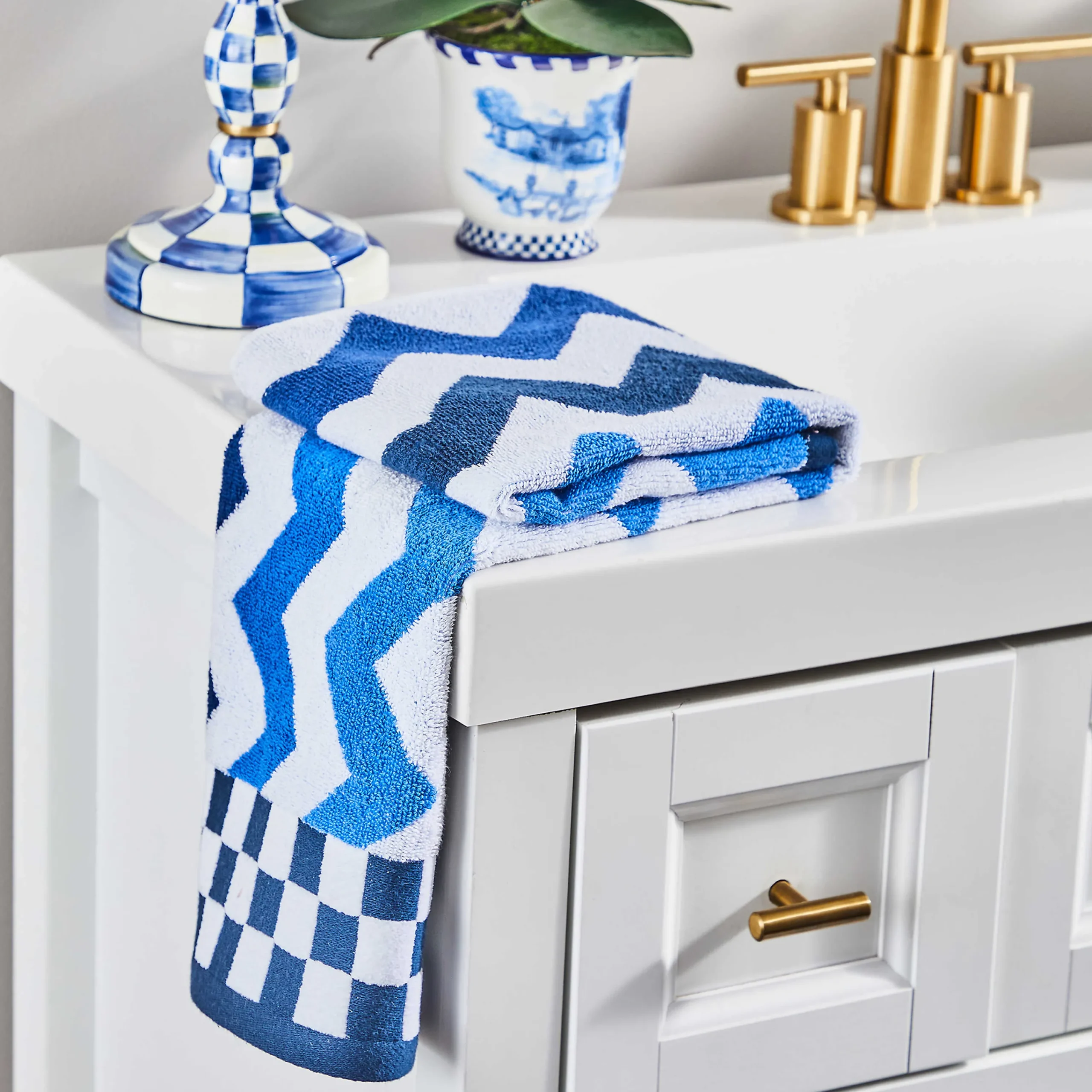 Shades Of Blue Play Nicely Together On Our Royal Zig Zag Hand Towel. A Bold Statement For Your Powder Room Or Master Bath, These 100% Terry Cotton Towels Feature A Checked Border.