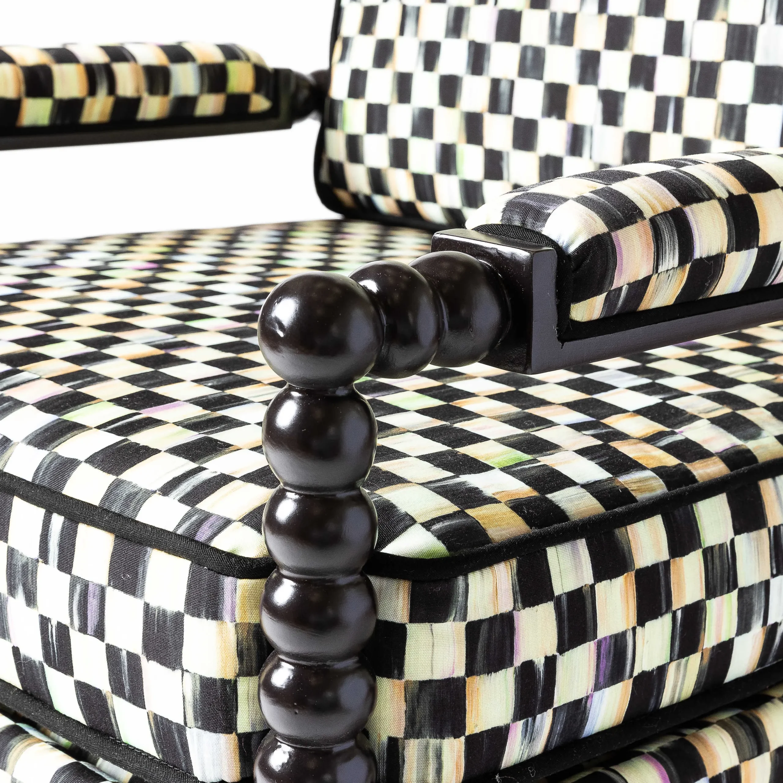 The Spindle Check Outdoor Chair Is A Modern Take On Parlor Style, Now For The Patio, In Weather-Ready Materials And Our Most Iconic Mackenzie-Childs Pattern. We Start With Chic Black Spindle Frames And Dress Them Up With Outdoor Cushions In Eye-Catching Courtly Check. Equally Elegant On The Lakeside Deck Of A Beloved Family Camp As In An Urban Townhouse Sunroom, This Suite Brings The Indoors Out With Panache.