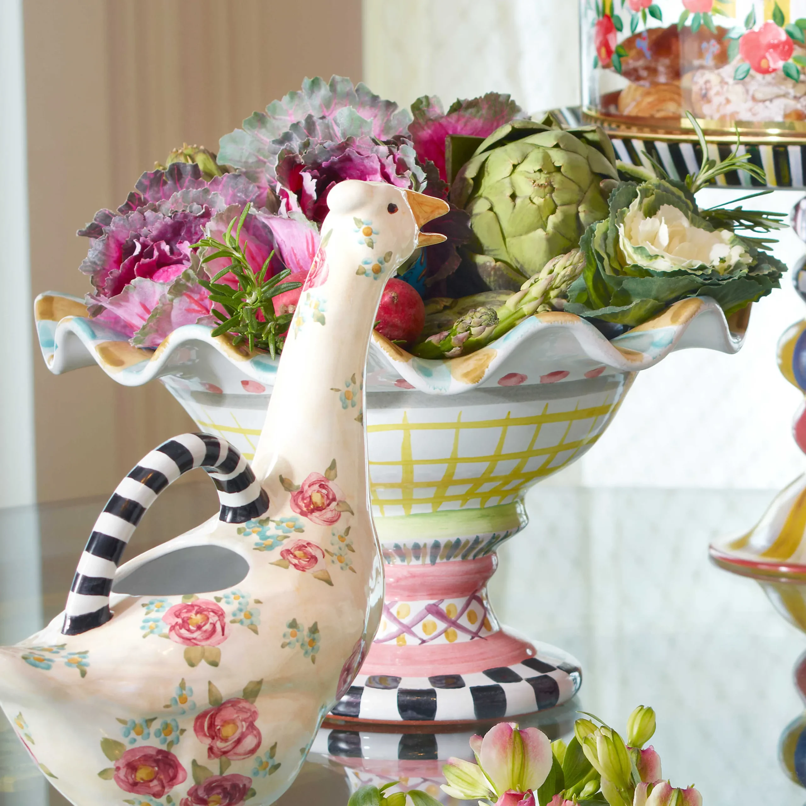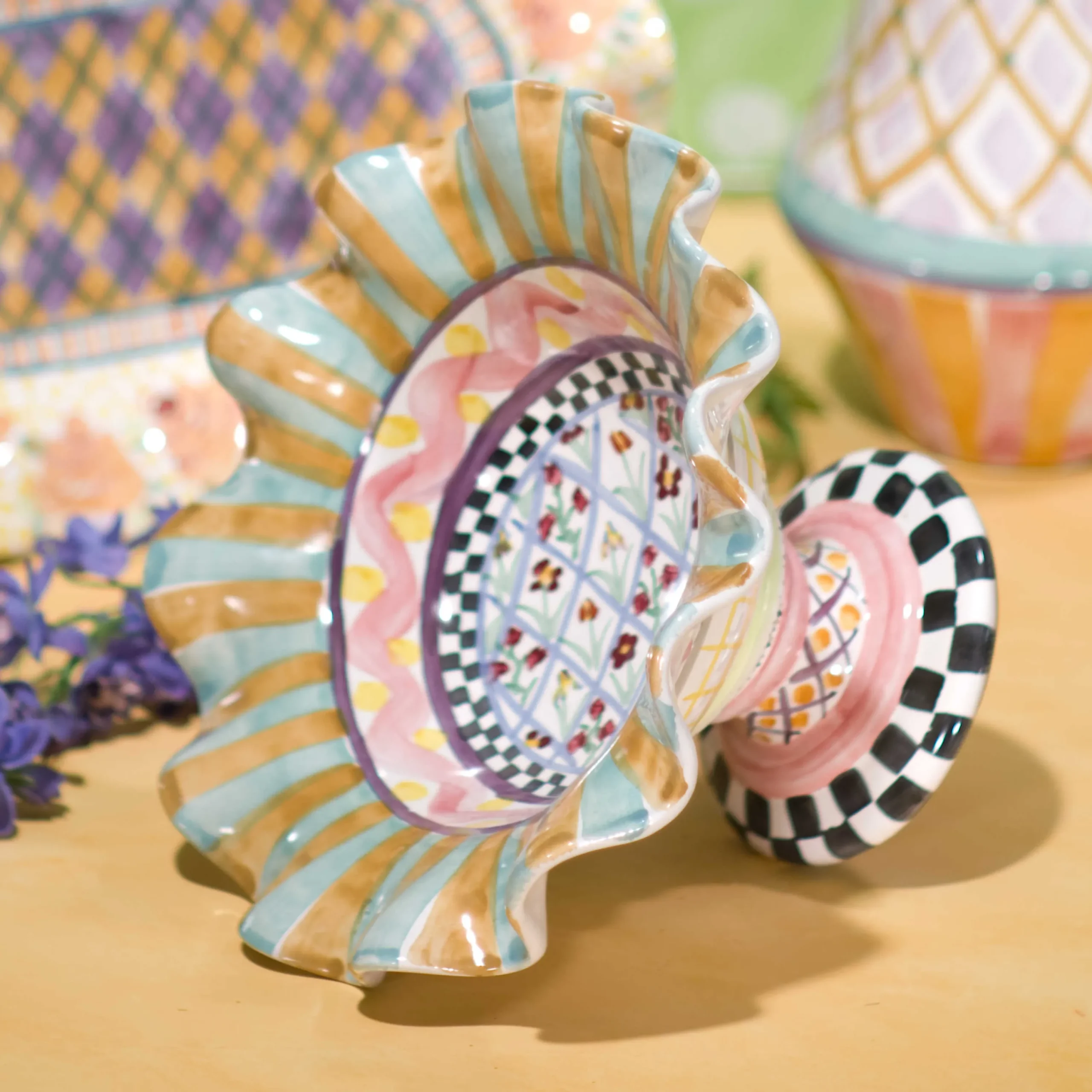 MacKenzie-Childs Taylor Fluted Rim Compote – Odd Fellows* Outdoor Entertaining